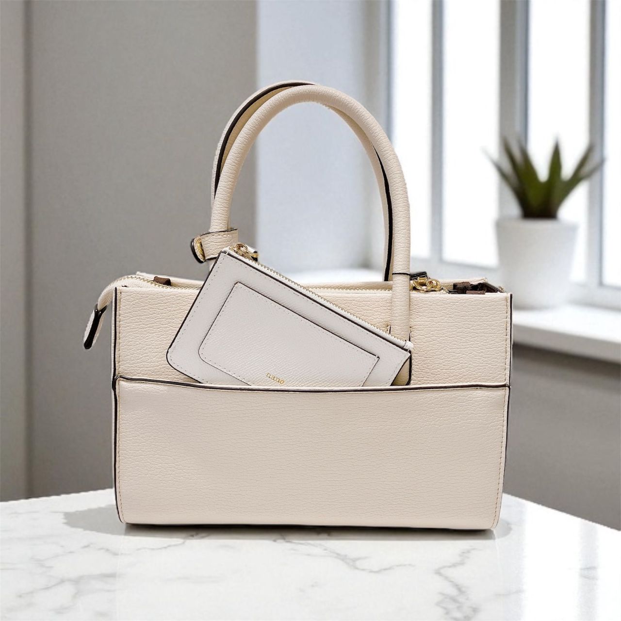 横長シルエットのバッグを