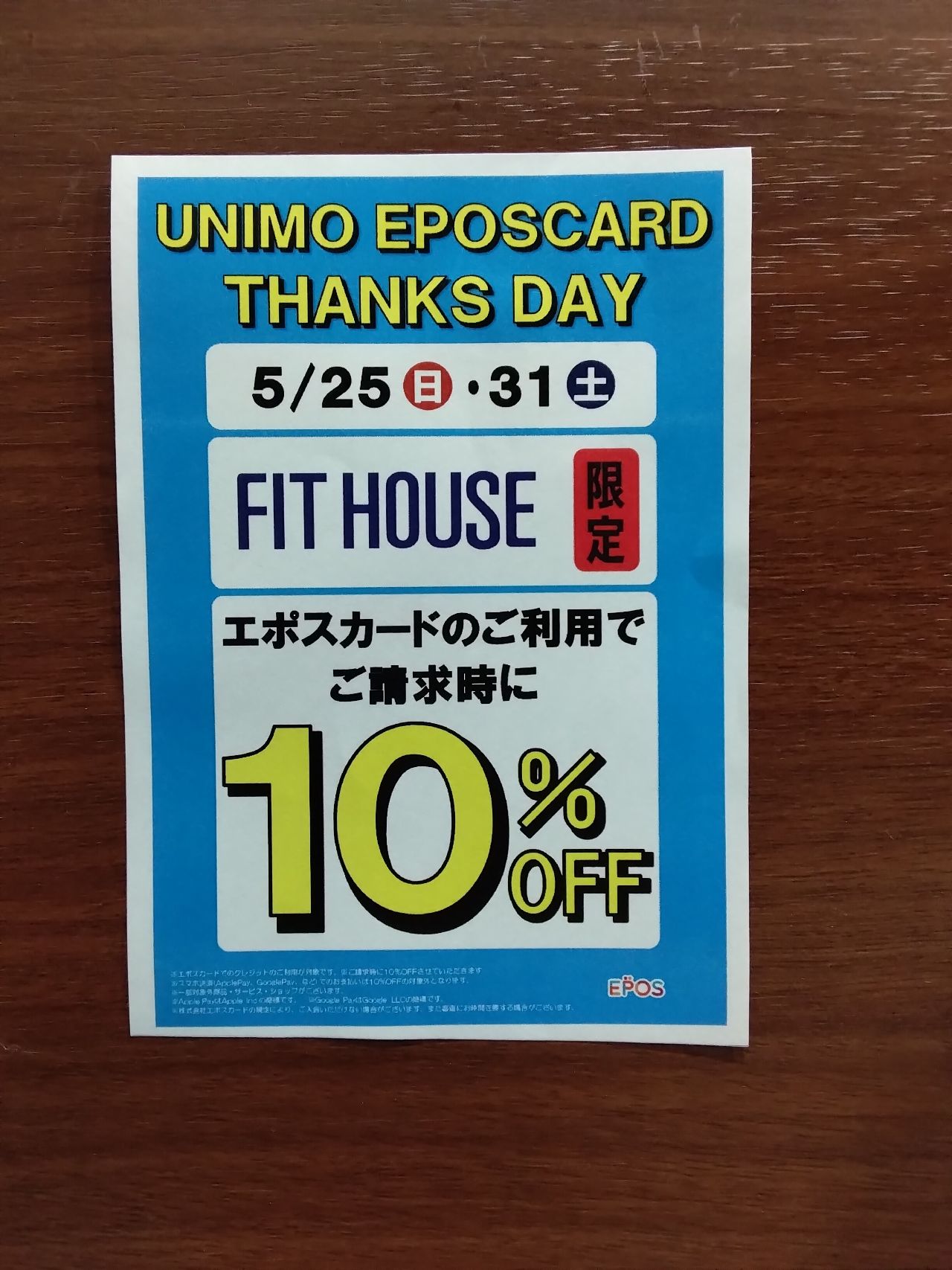 5月31日(土)にエポスカードでお支払い