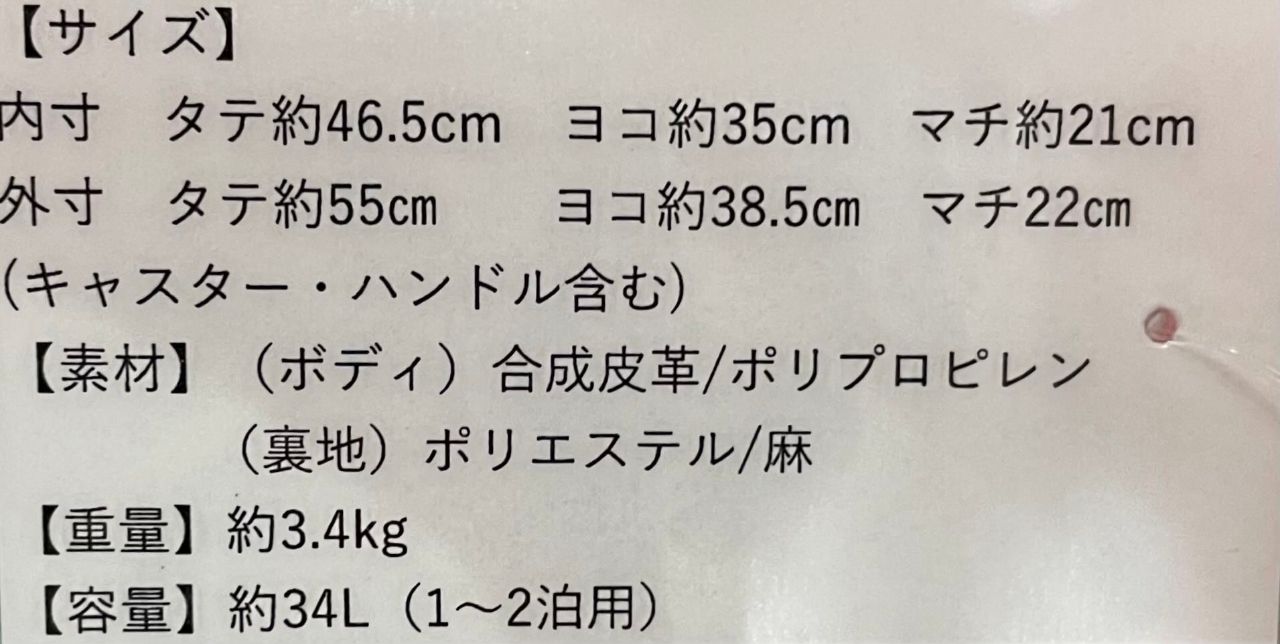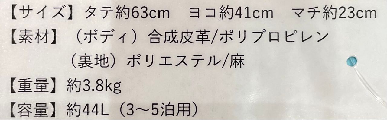 3〜5泊用におすすめサイズです。