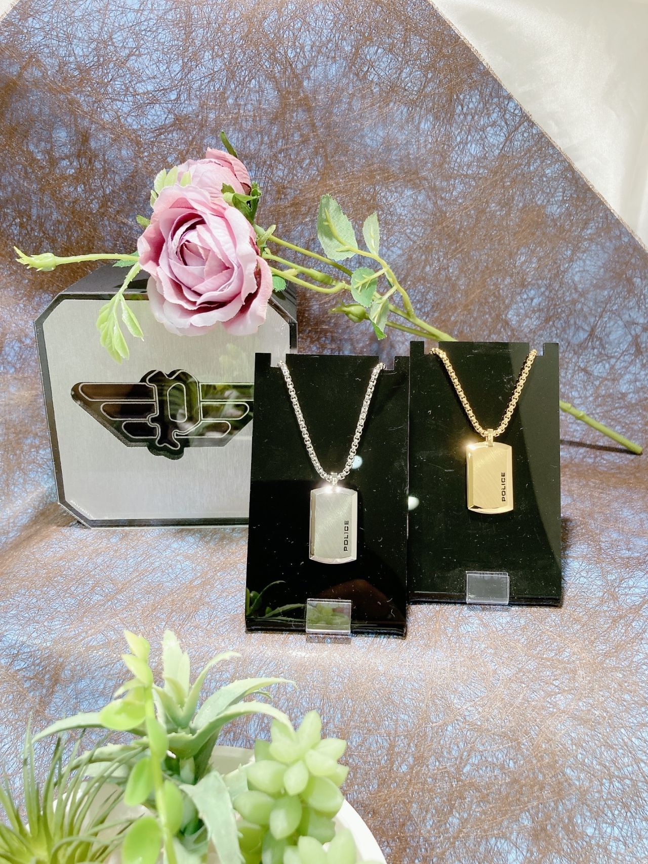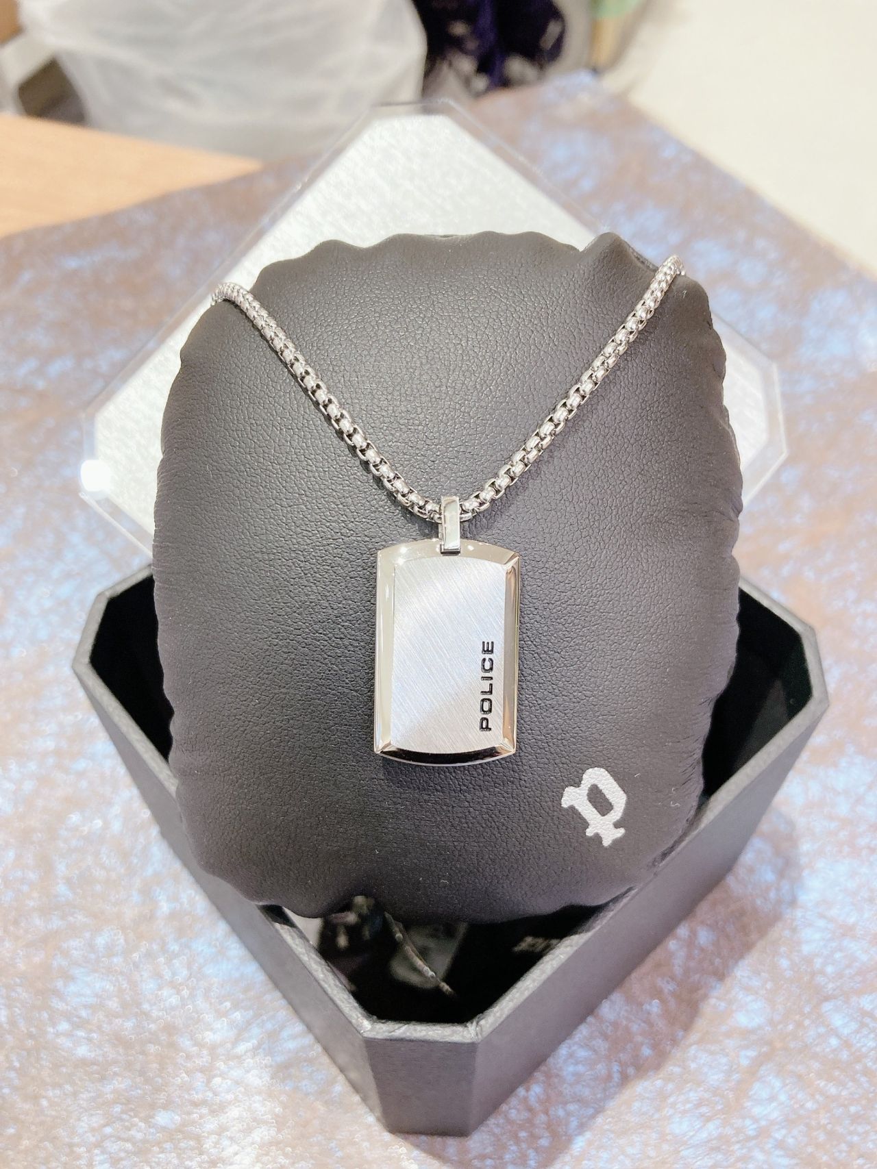 「ありがとう」をかっこいいポリスのネックレスと