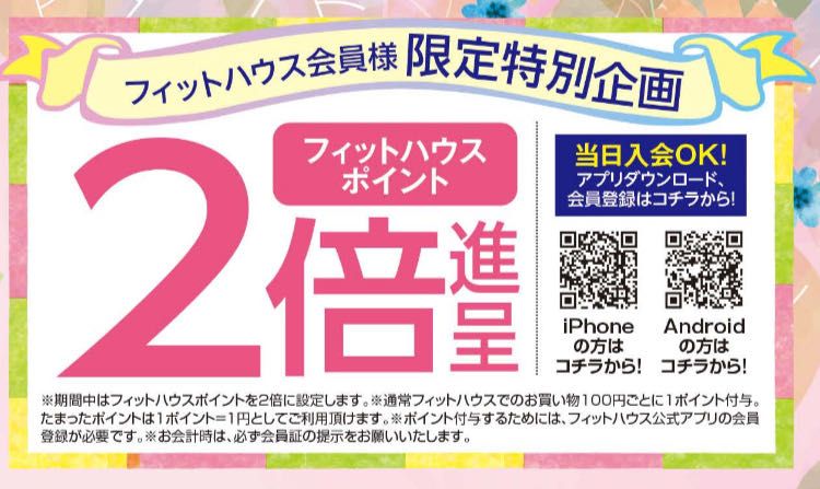 期間中はフィットハウスアプリ会員様