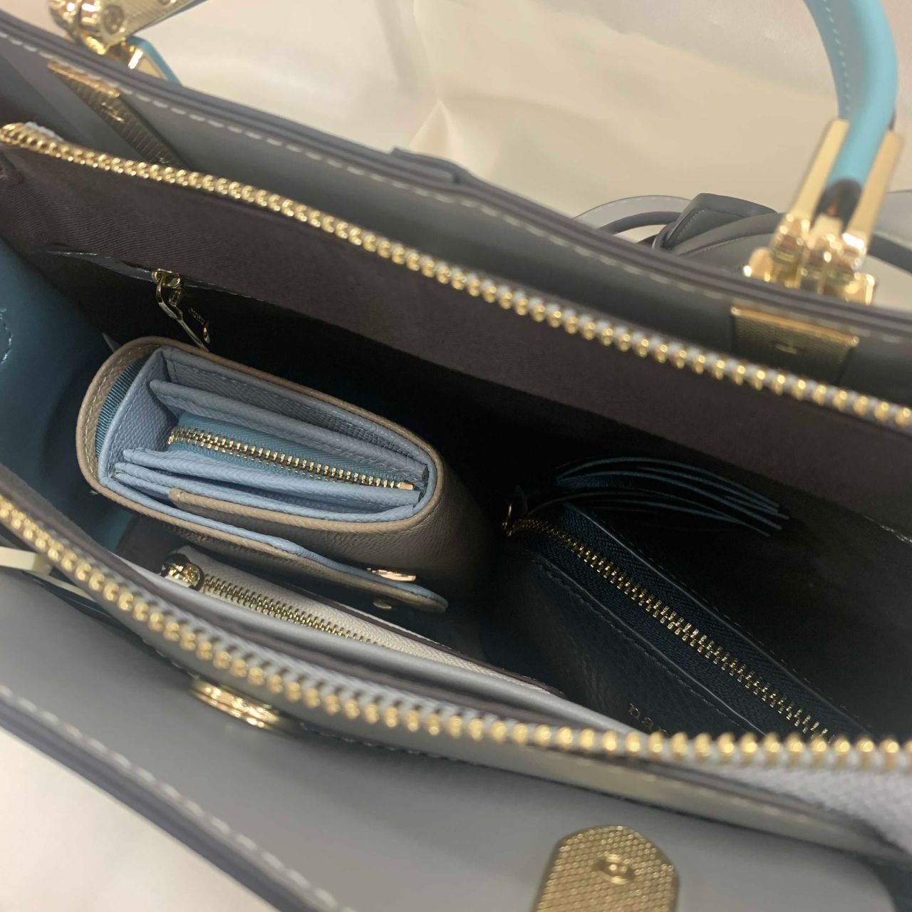 ライトグレーブラックベージュの3色展開で普段使いのしやすいハンド、ショルダーの2WAYとなっています。