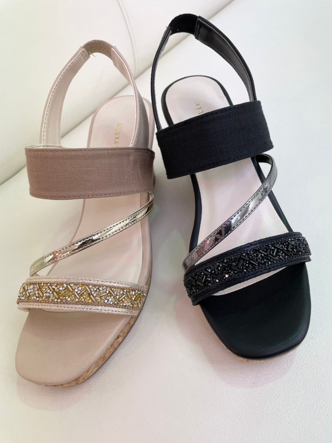 コルク素材のヒールが夏らしく