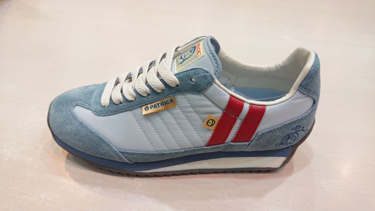 PATRICKの顔ともいえるモデル「MARATHON」全体を初期のドラえもんカラーをイメージしたレトロな1足を表現しています(*^^*)