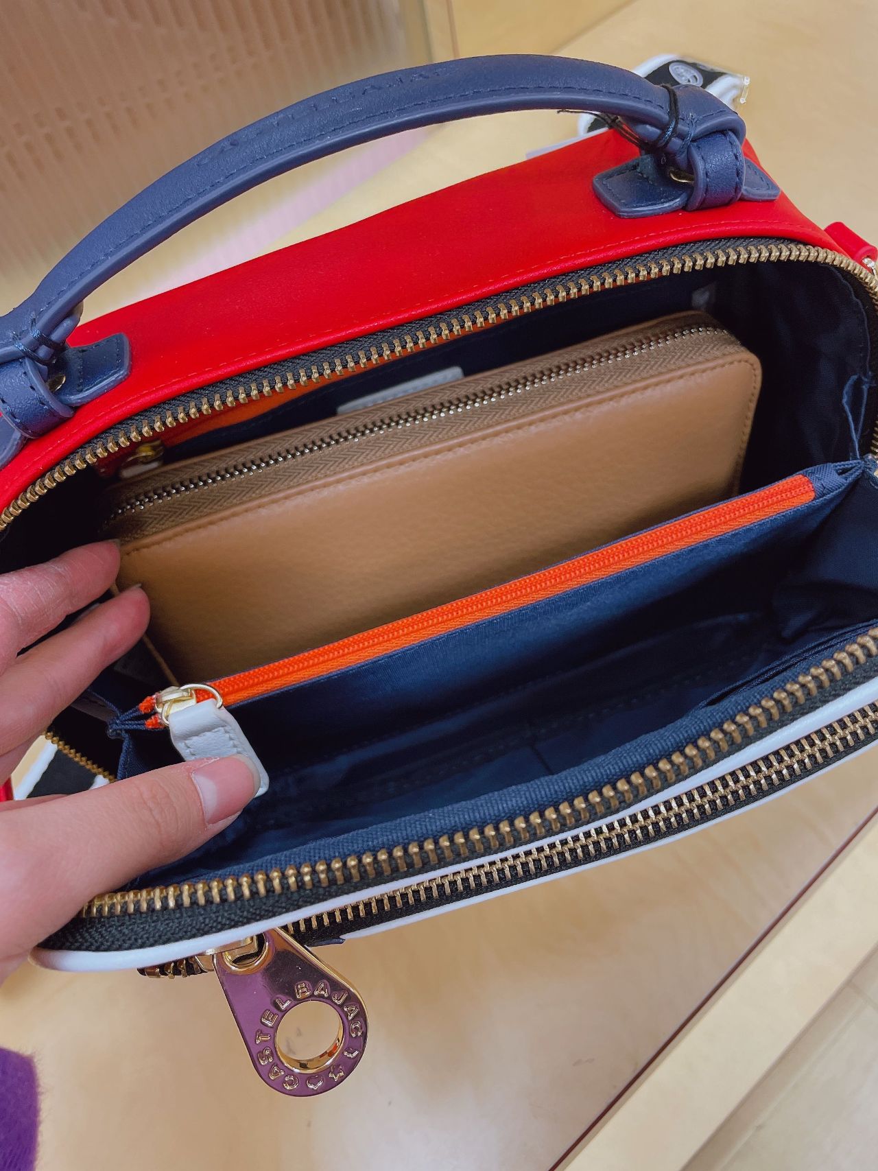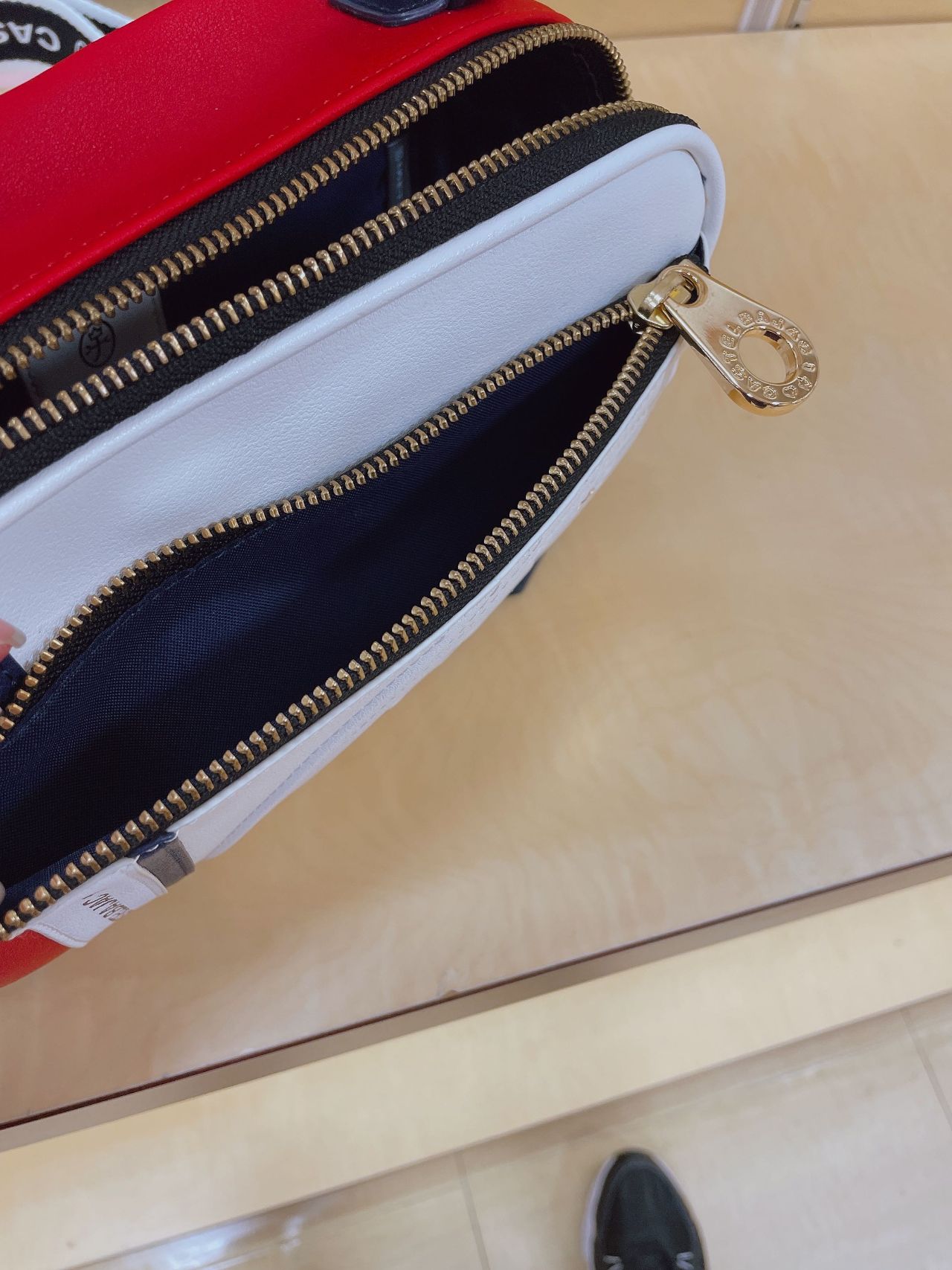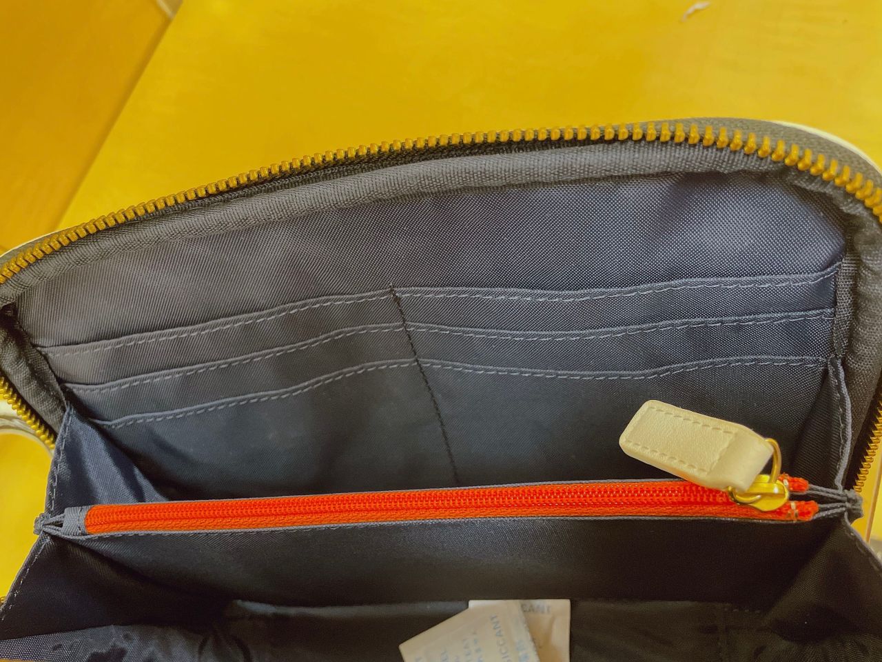 中にもチャックがついていますし、外側にもついているのでスマホなど入れていただけます!