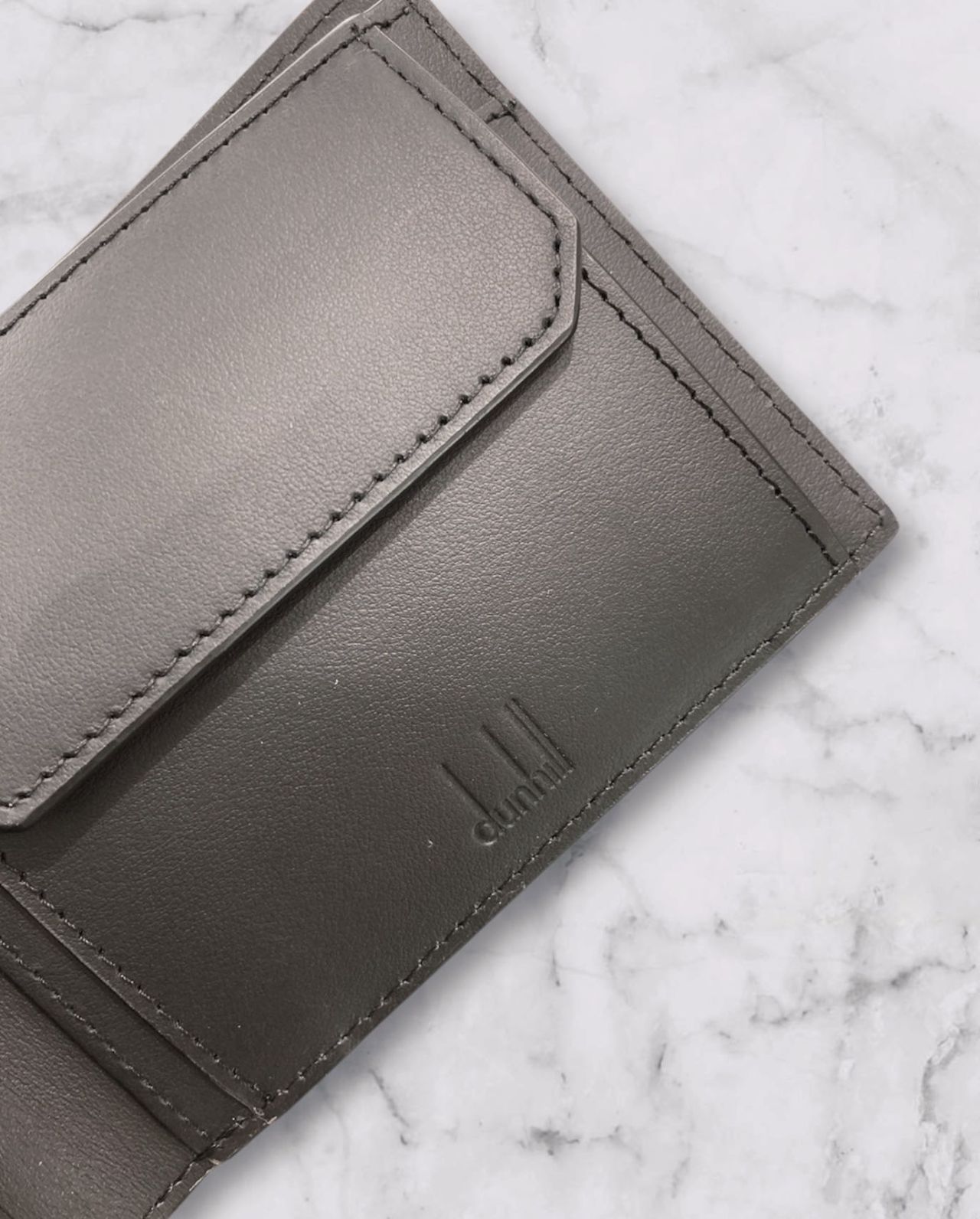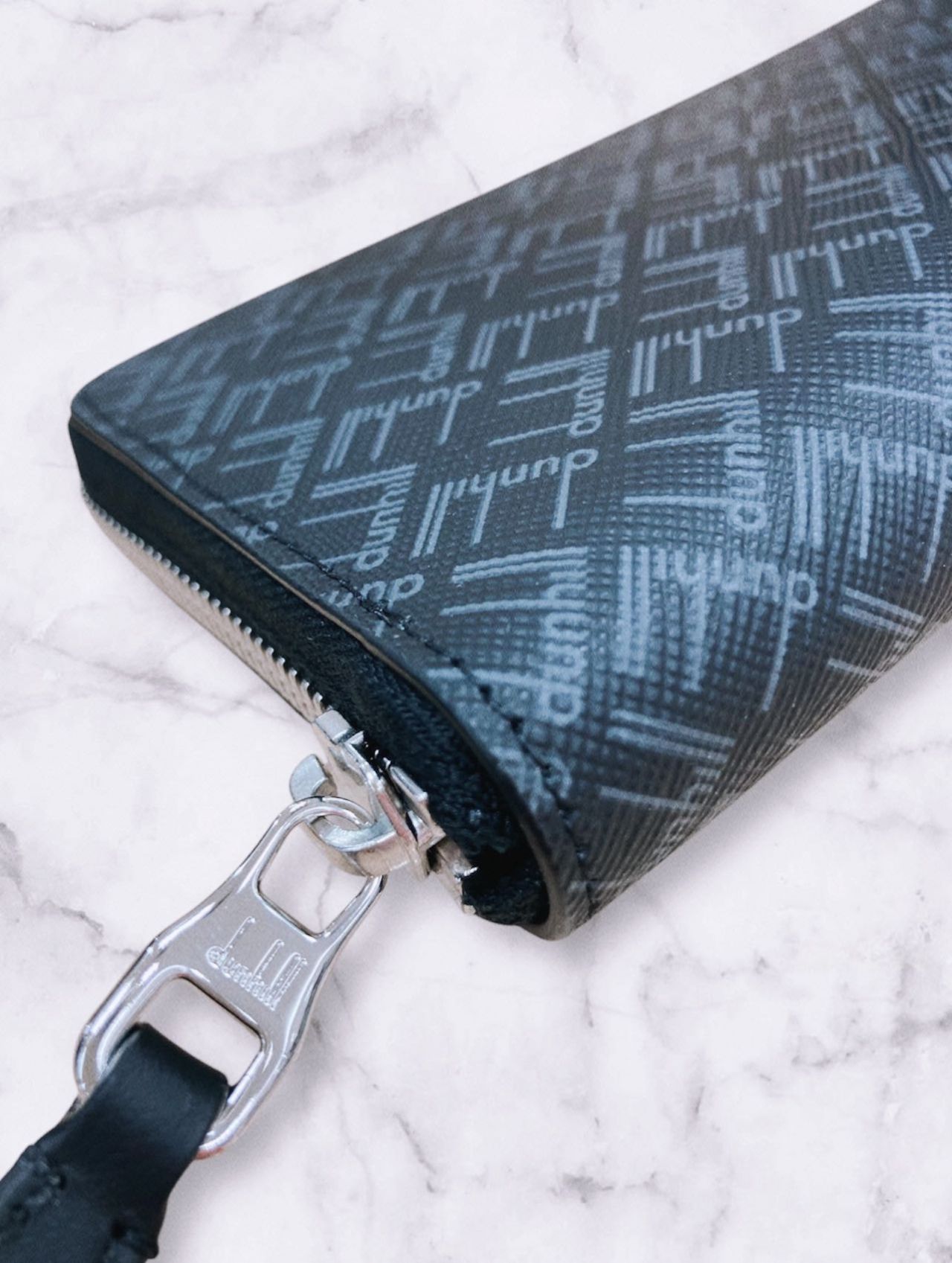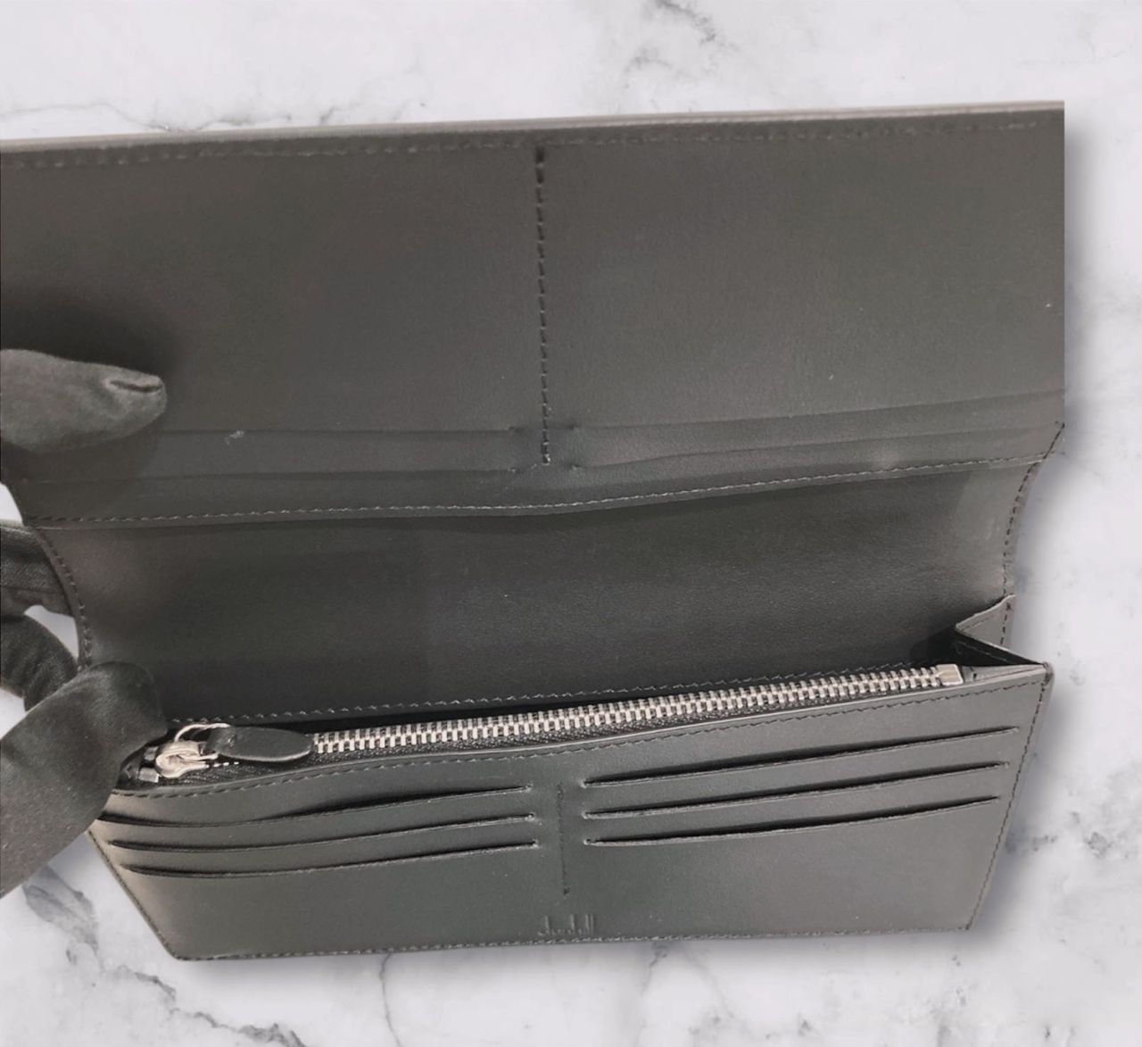 安定のラウンドファスナーは、引き手の金具部分にdunhillのロゴがさりげなく入っています。