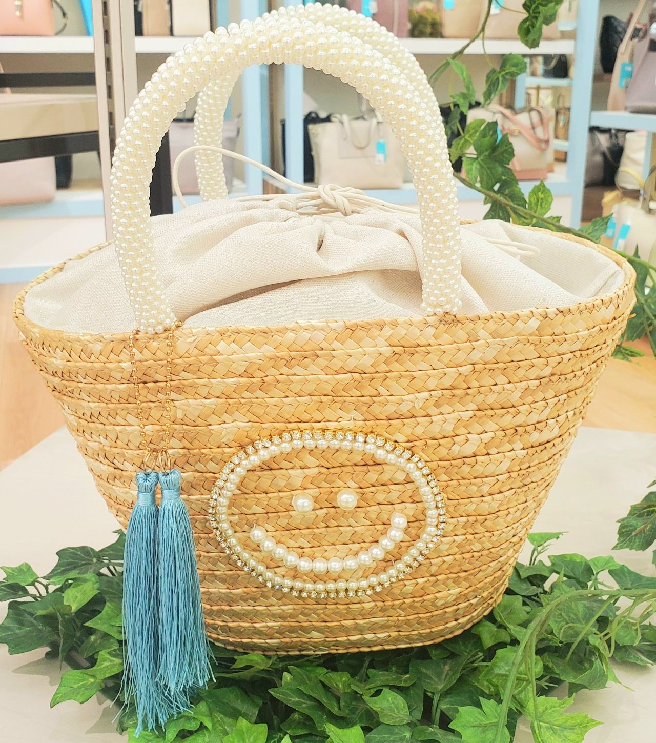 ビーズハンドルとパールの刺繍が可愛いSMILEYシリーズ。
