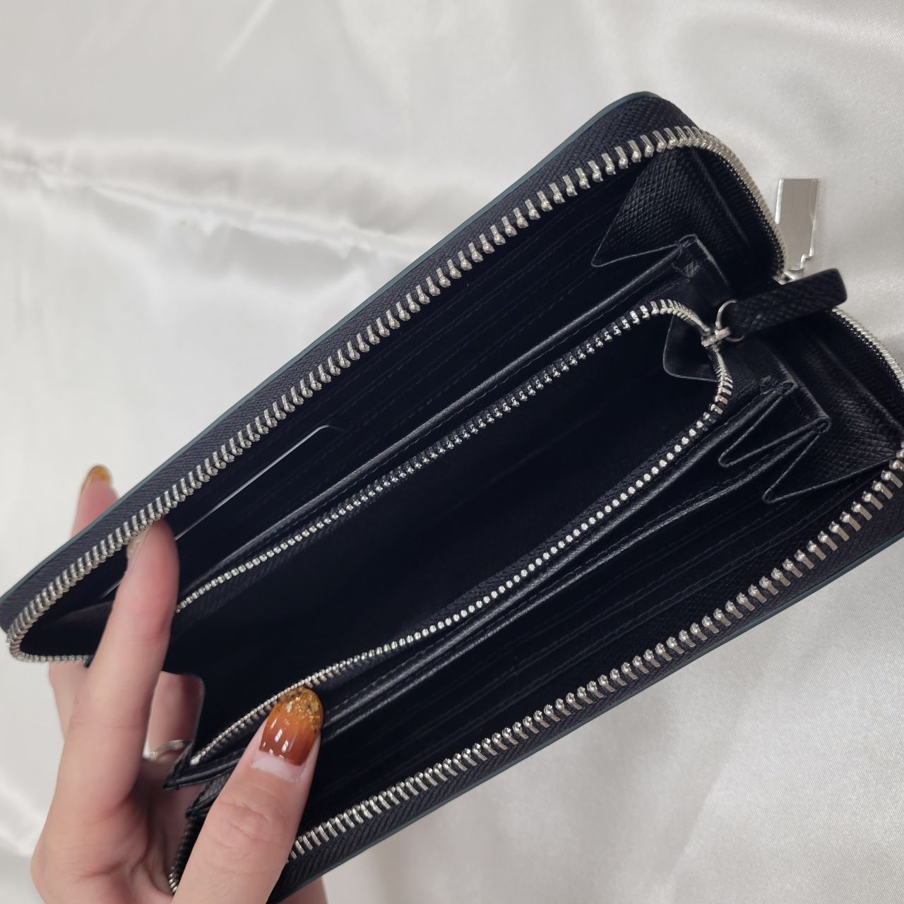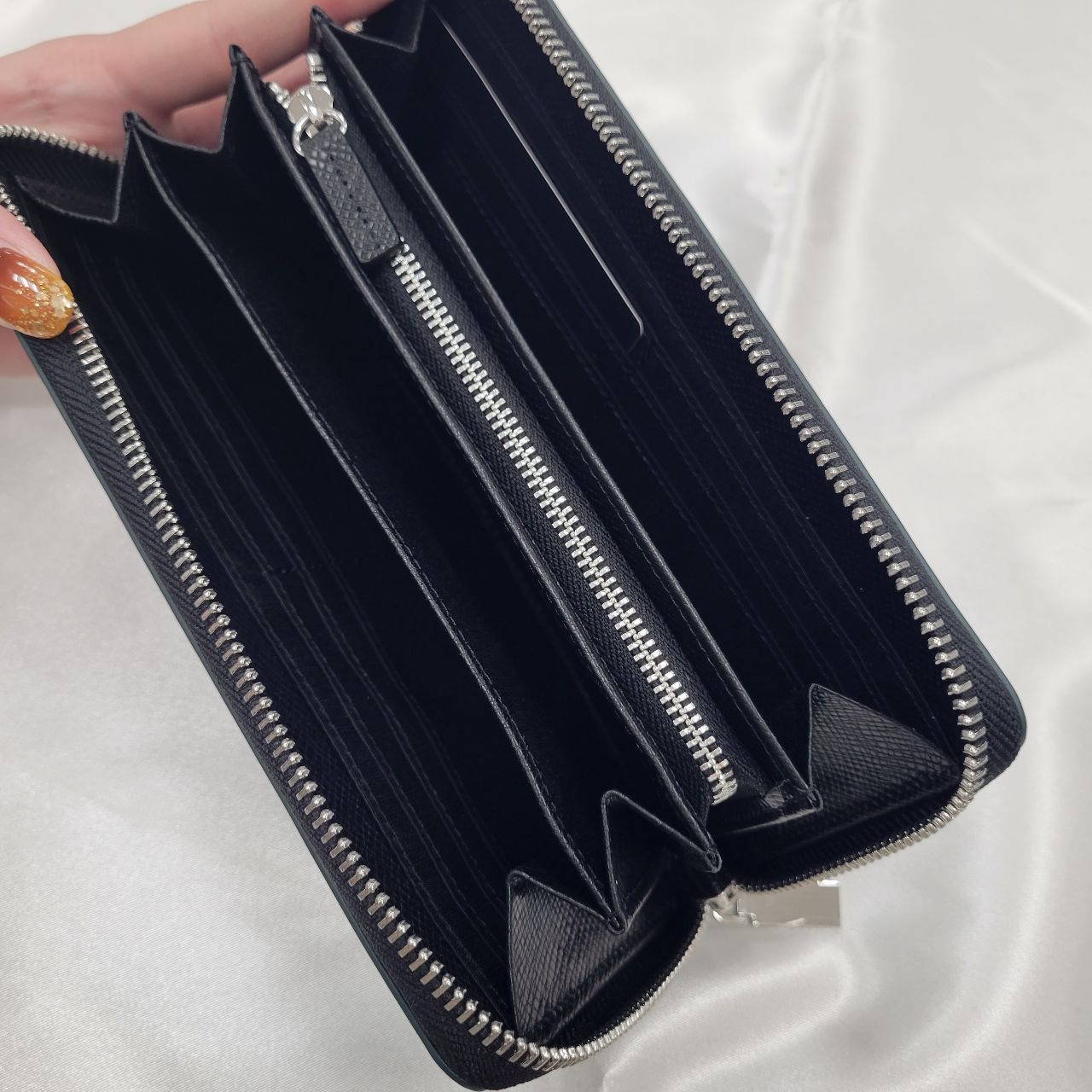 小銭部分もL字にファスナーが開くので