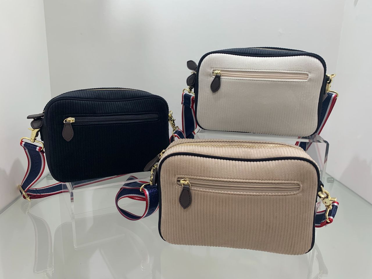 ショルダーストラップは、無地とトリコロール柄