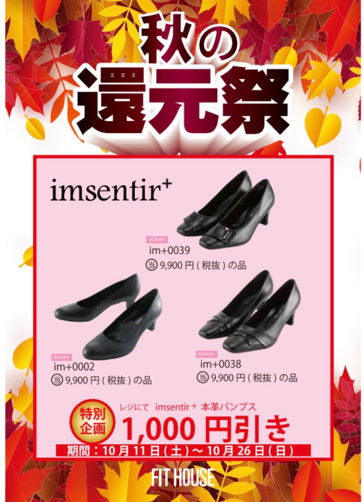 秋の還元祭!本革パンプス1000円オフ企画!
