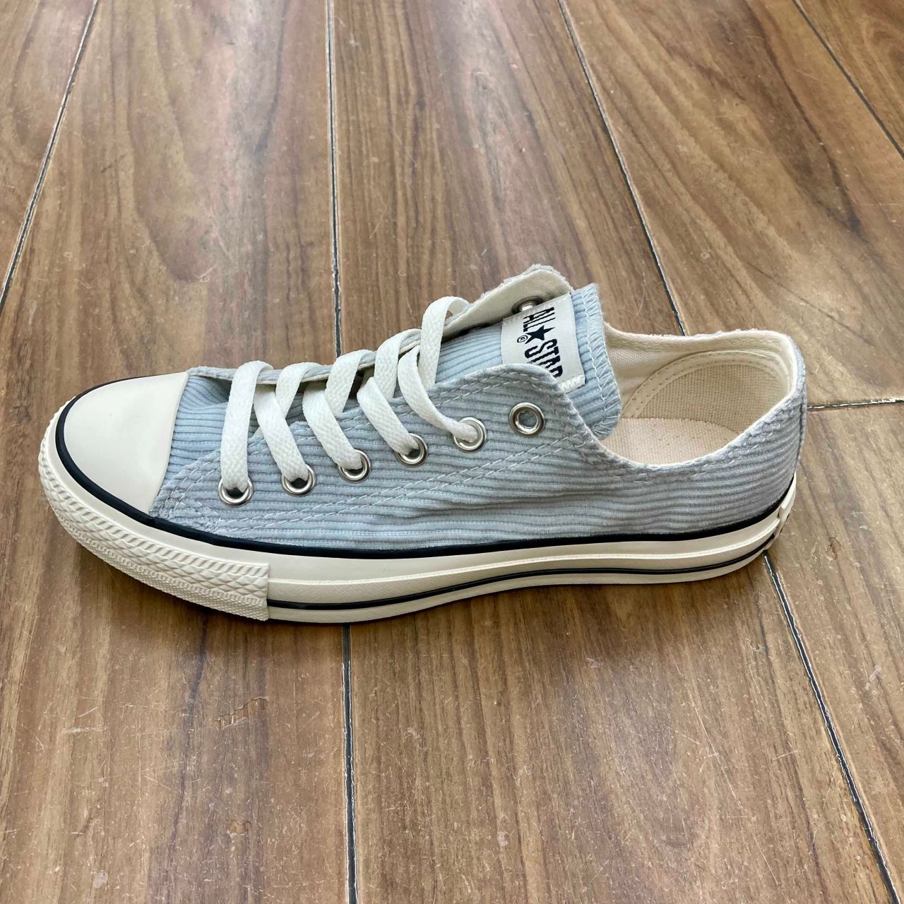 淡い灰色のコーデュロイ生地が