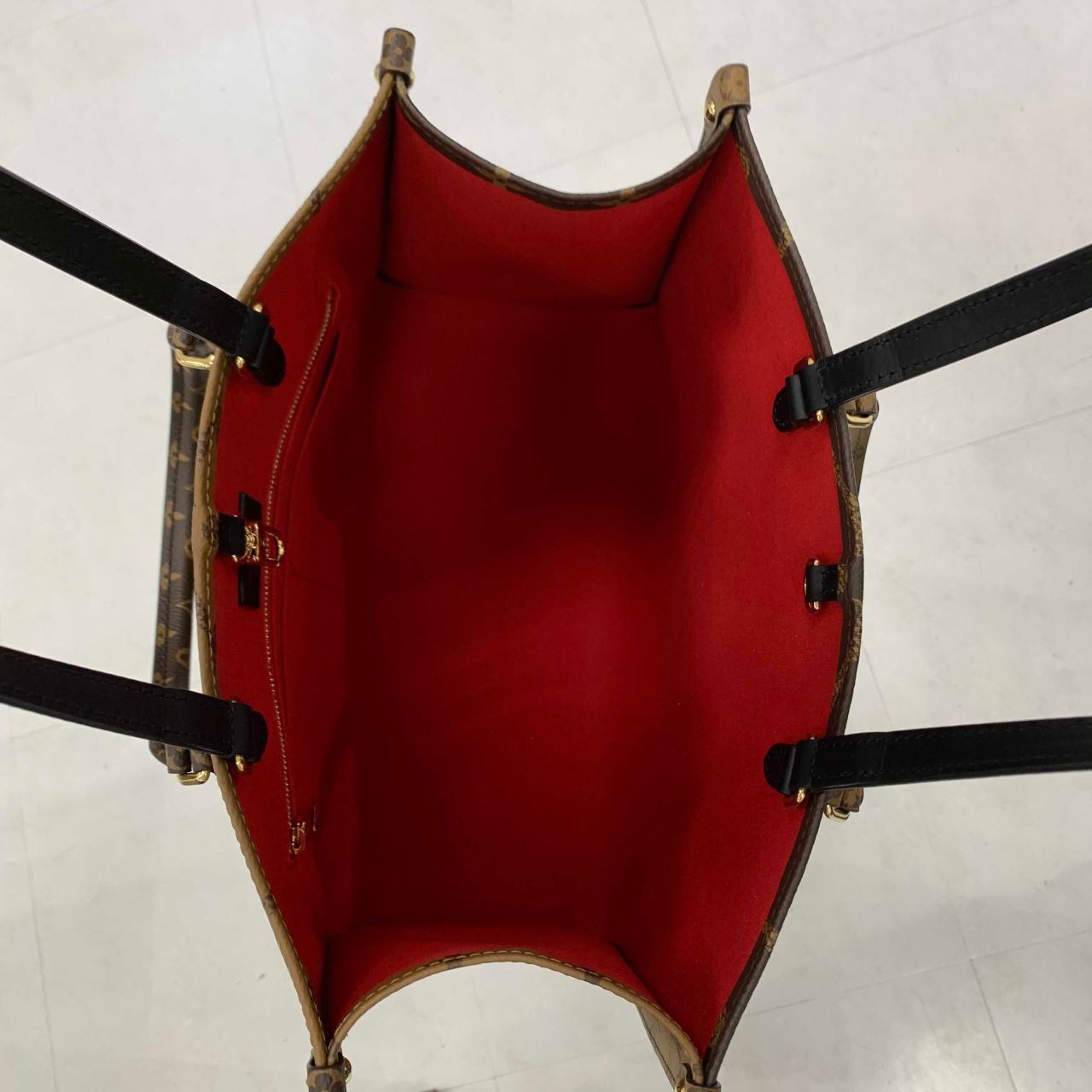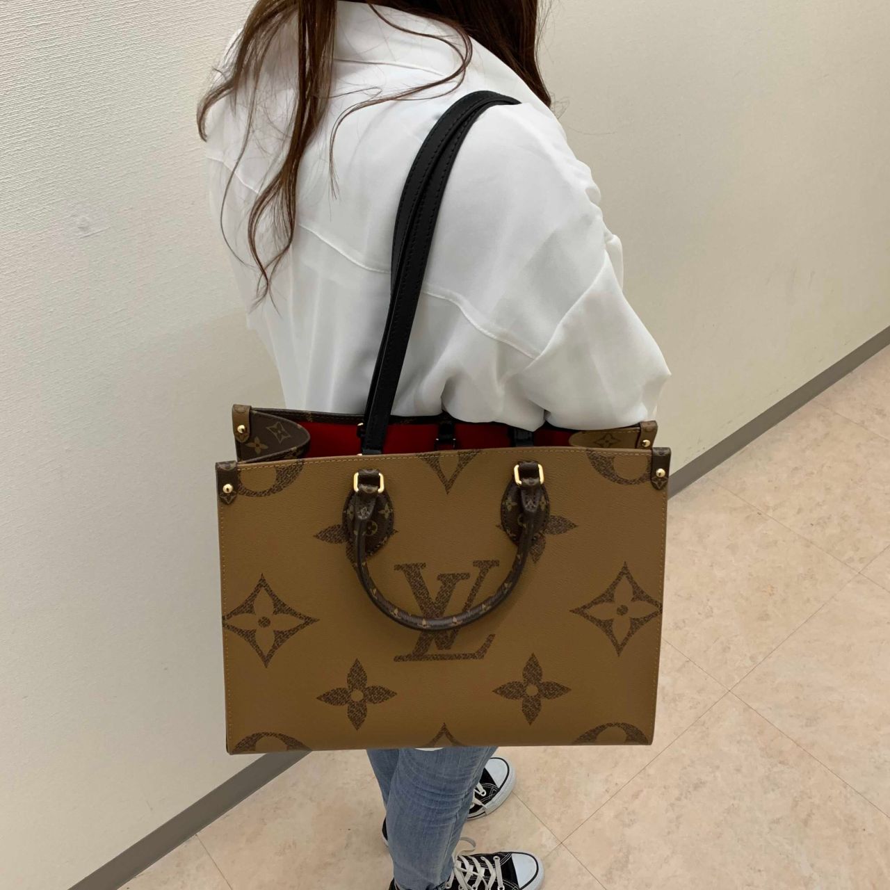 その名の通りビジネスシーンからショッピングまで休む間もないほど活躍するバッグ「オンザゴー MM」。忙しい女性の必需品を持ち運ぶのに充分な高い収納力が魅力です。