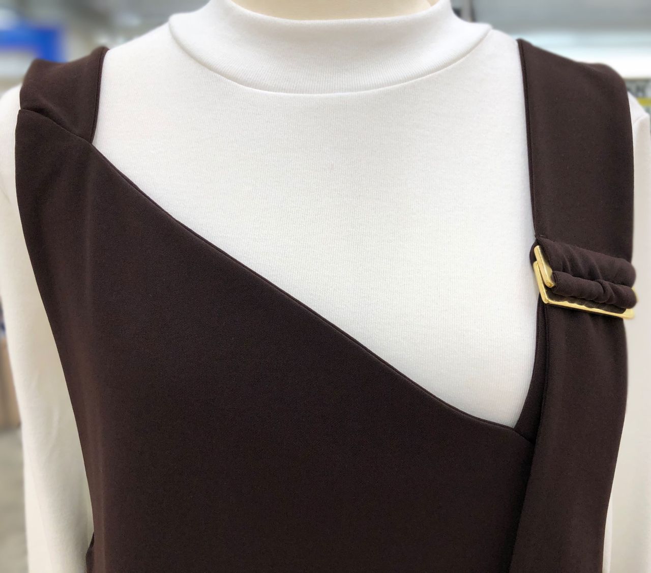胸元も斜めカットになっているので
