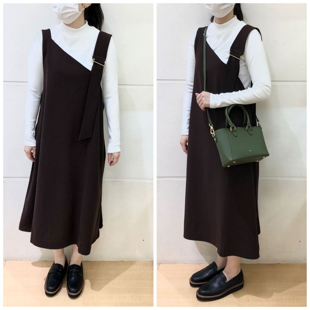 モックネックのインナーで甘すぎない