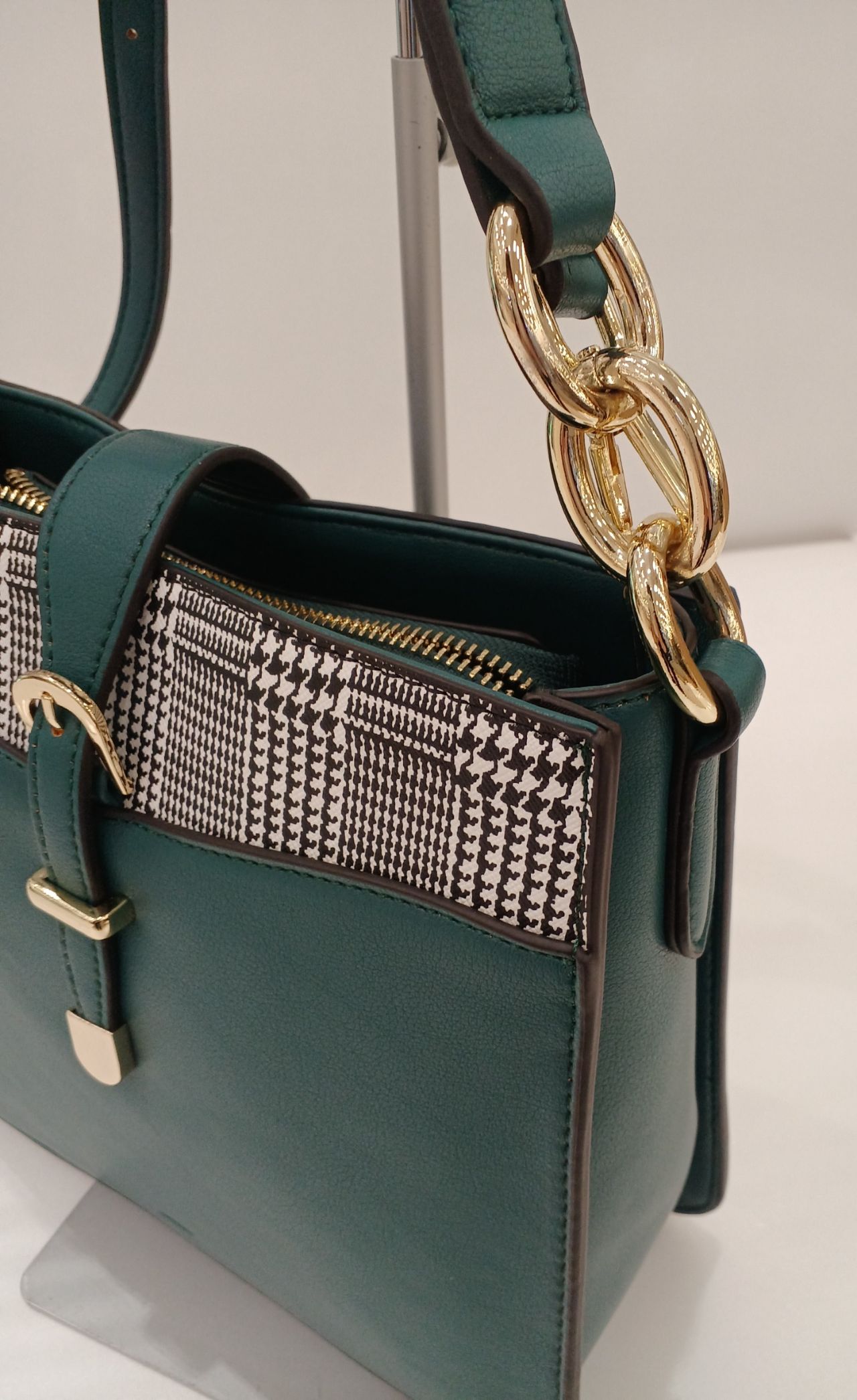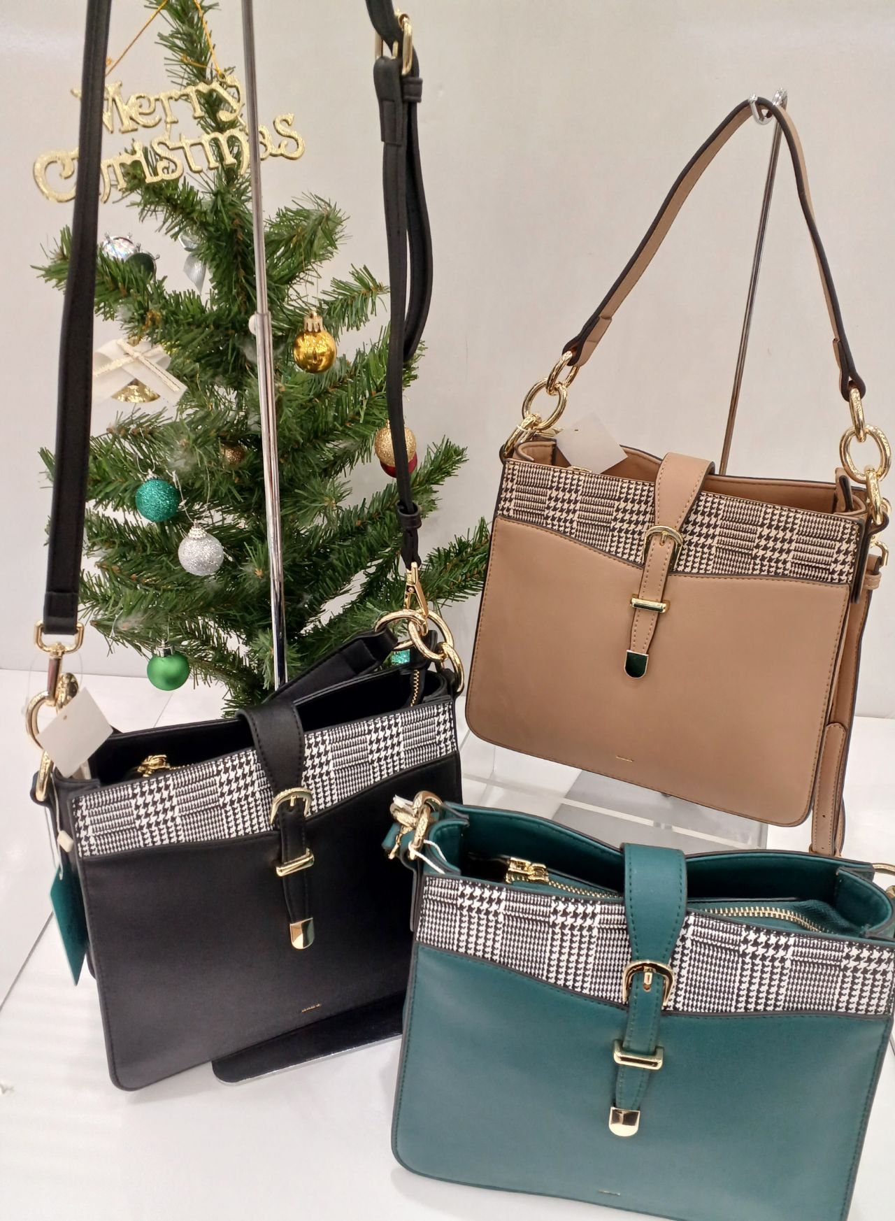 アクセントの千鳥格子がかわいいワンハンドルタイプの3WAYバッグです!