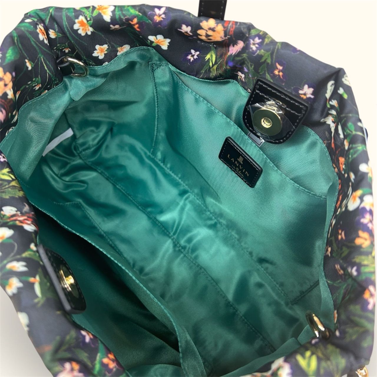 バッグの内側は鮮やかなグリーン。