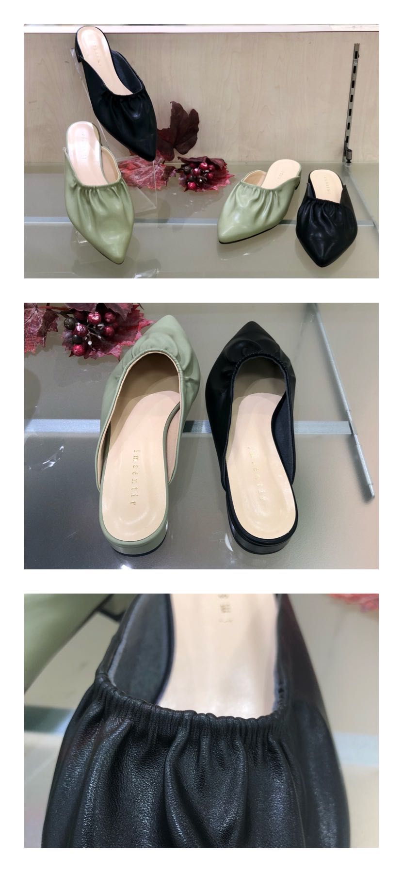 かかとのないポインテッドミュールで