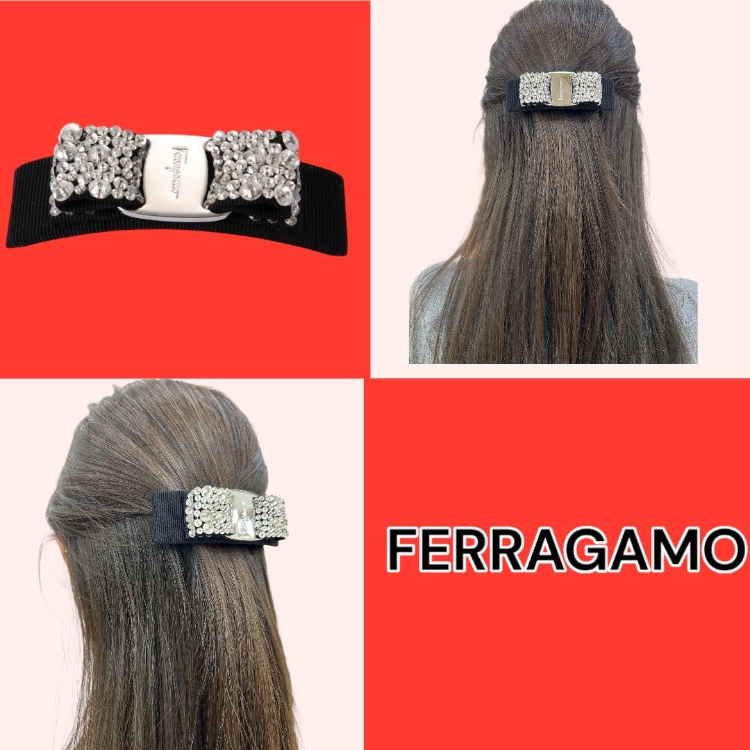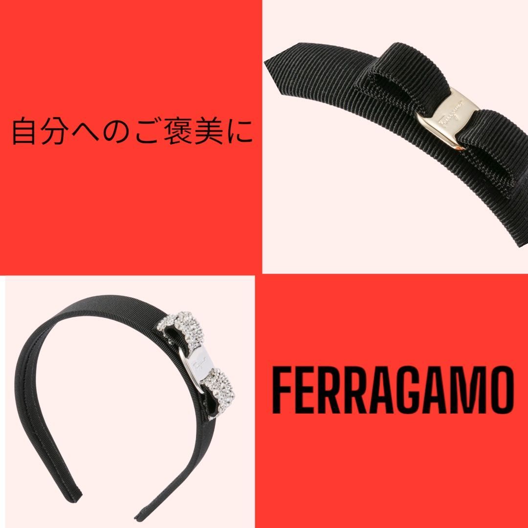 (右上) アイコン「ヴァラ・リボン」がエレガントなカチューシャ。リボン中央のプレートは「ferragamo」のロゴ入り