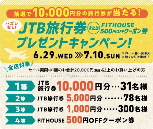 JTB旅行券またはFITHOUSEクーポン券が