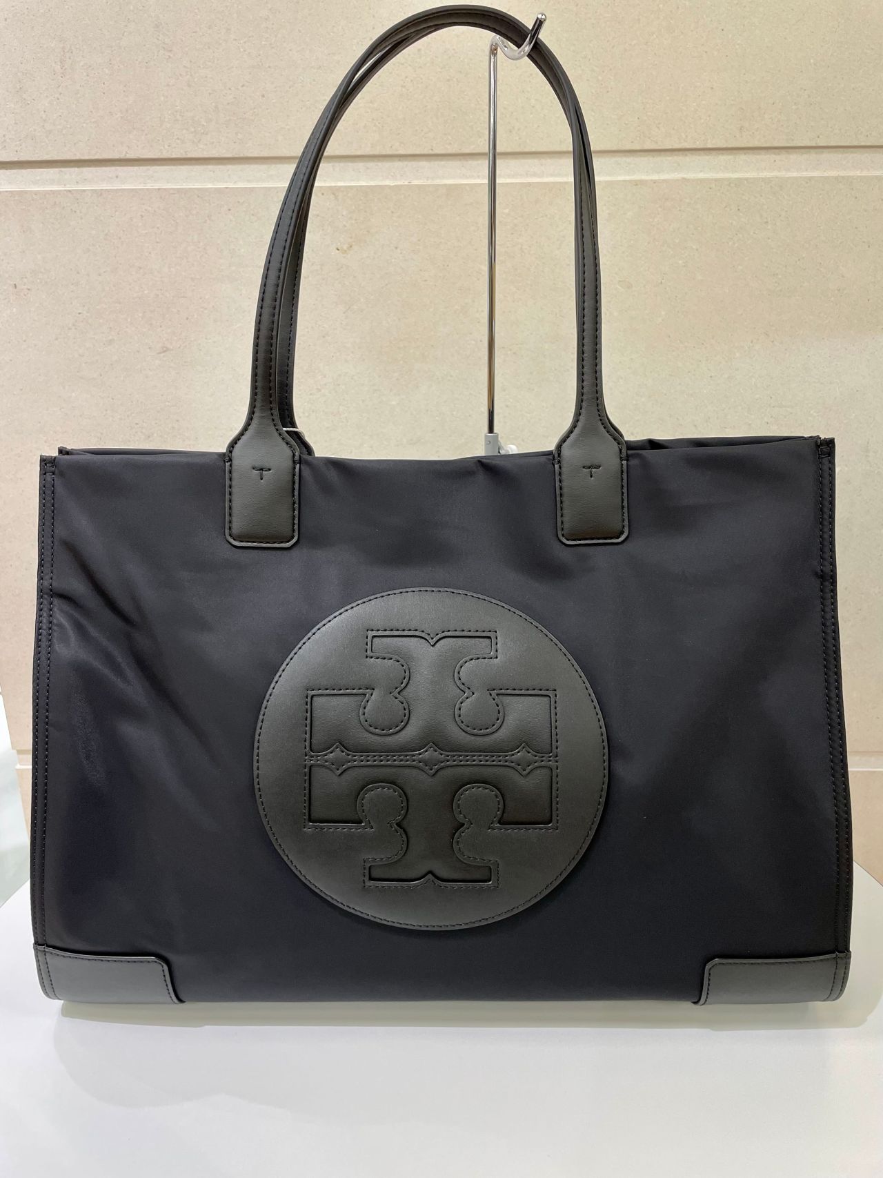 大きなトリーバーチのブランドアイコンが目を引くデザインのトートバッグです!
