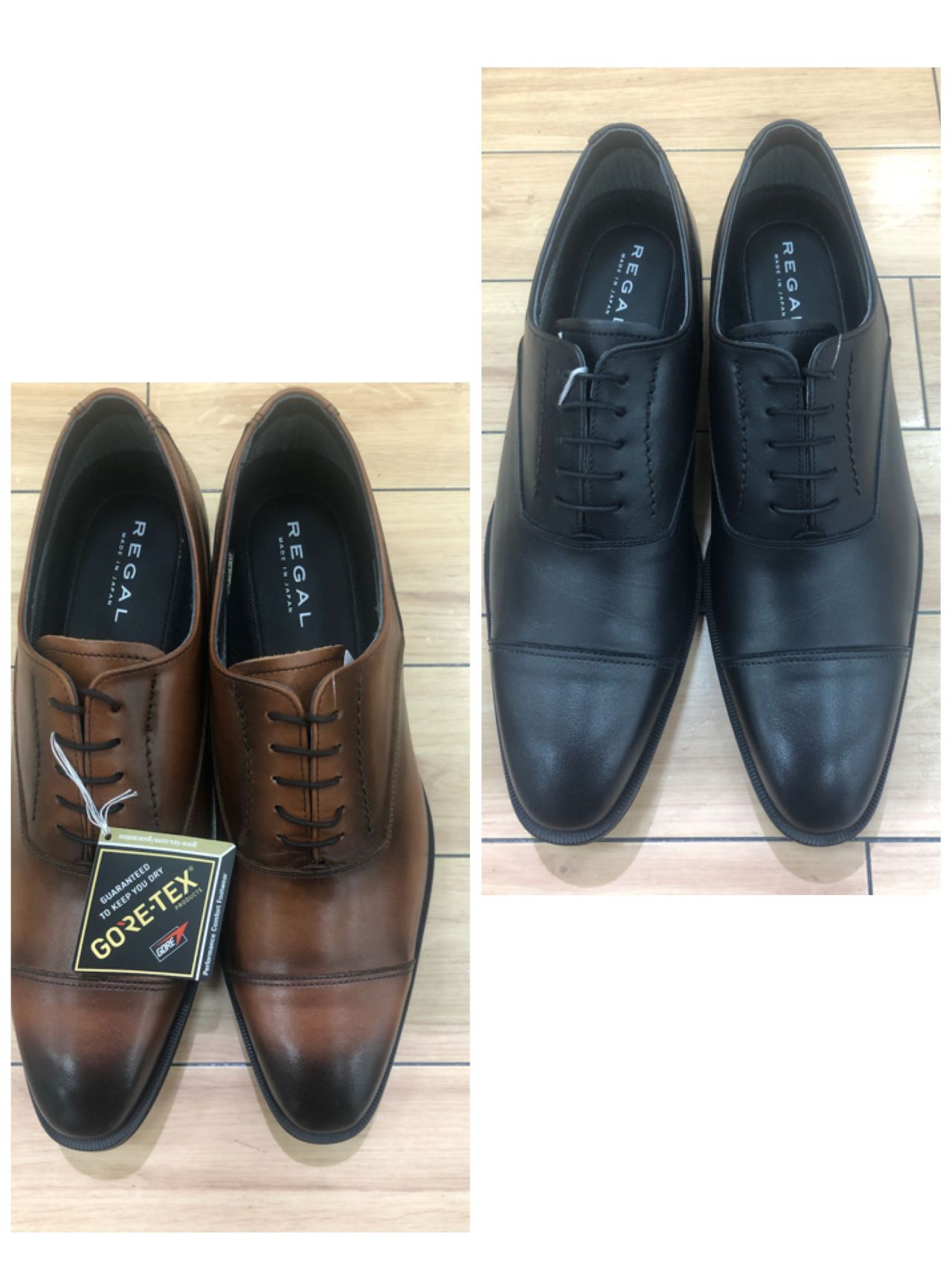 防水シューズにありがちな野暮ったさは全く無く本格的なストレートチップタイプのドレスシューズです。