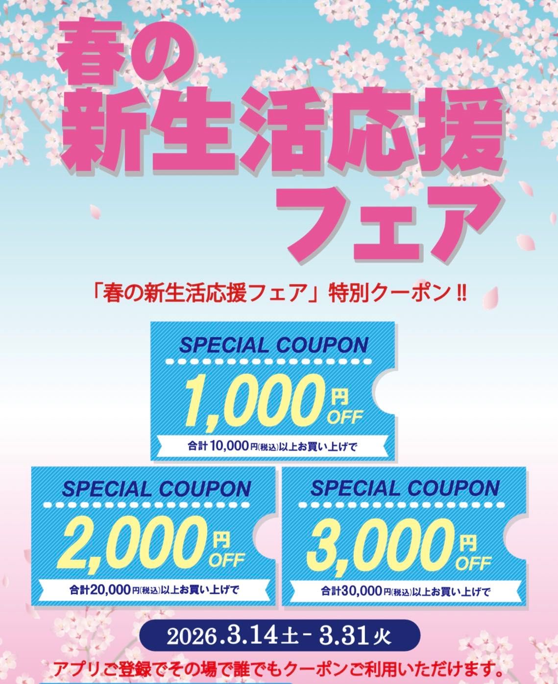 春の新生活をクーポンで応援させて頂きます♪