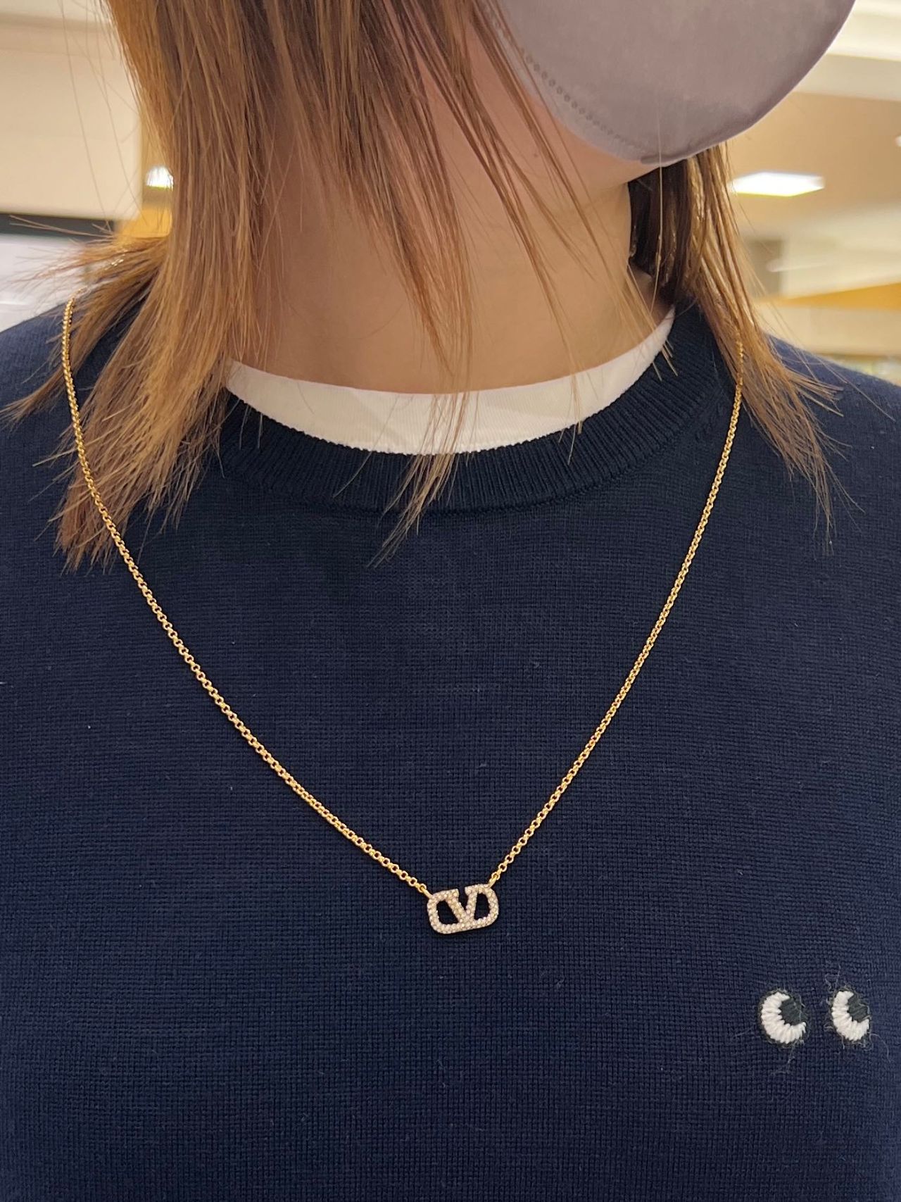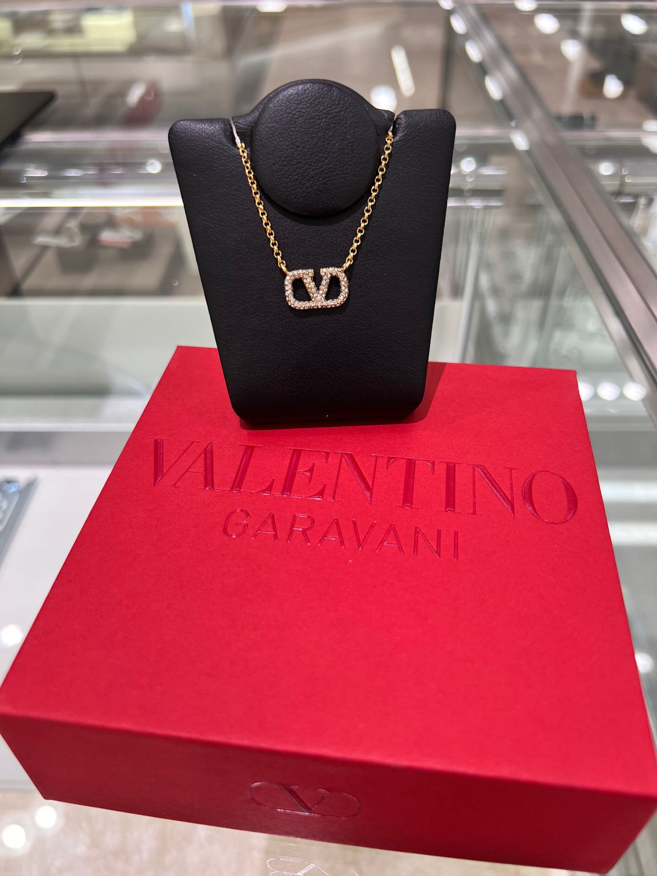 アイコニックなVロゴシグネチャーに、きらびやかなクリスタルデザインのネックレス♡