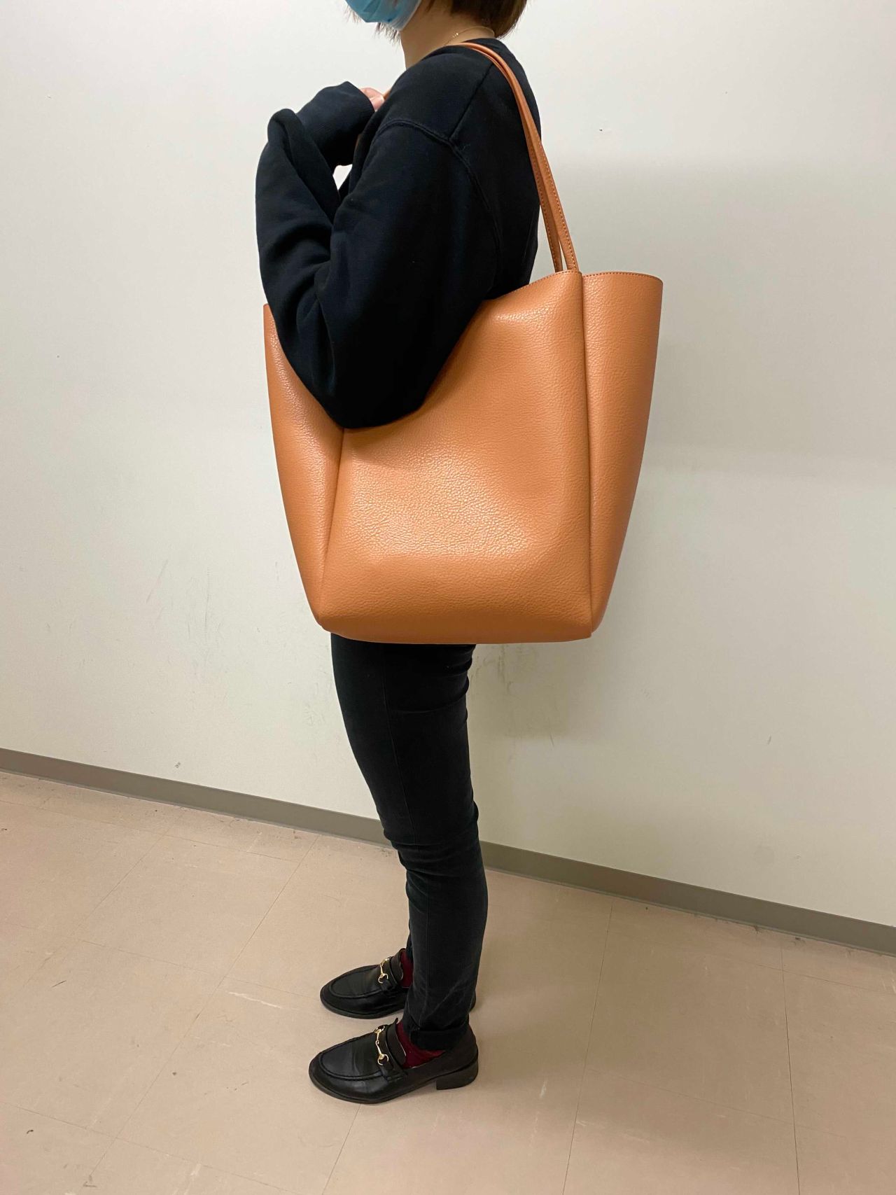 こちらのバッグは合成皮革ですが、とても軽くてたくさん荷物を入れることができます◎
