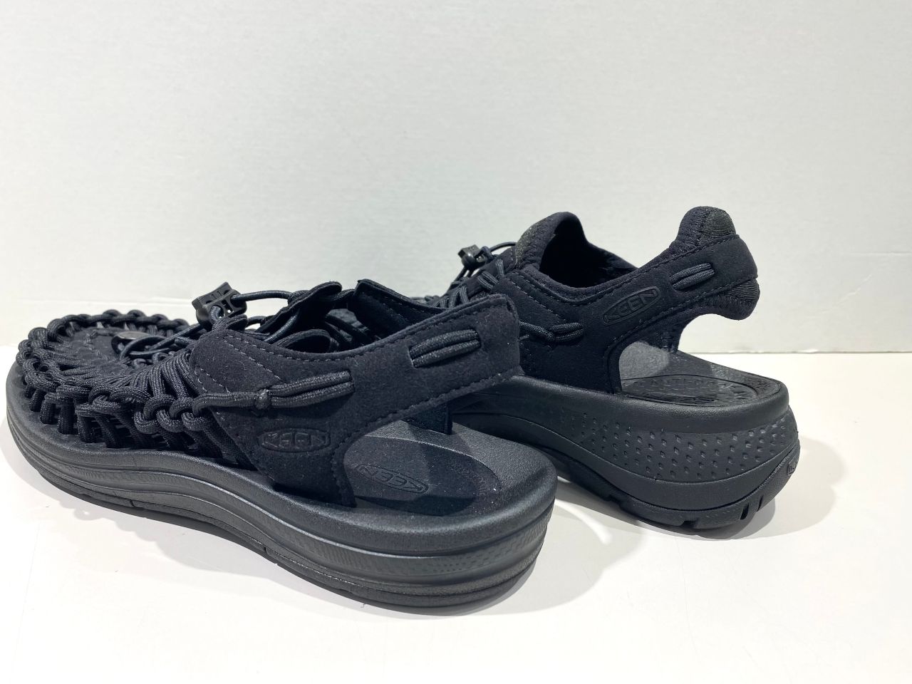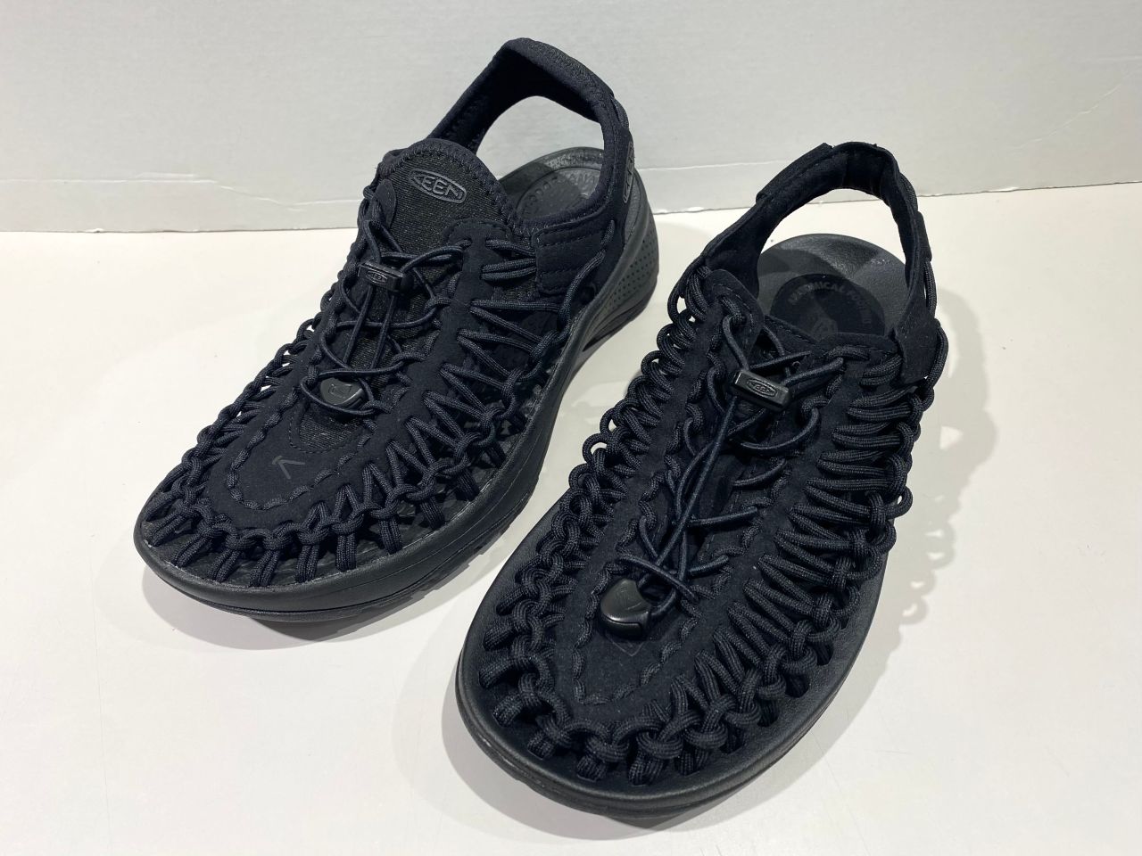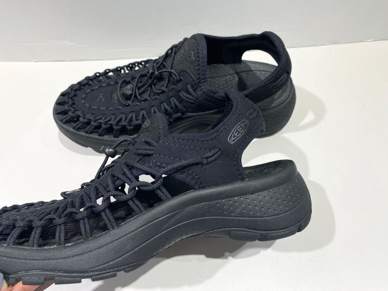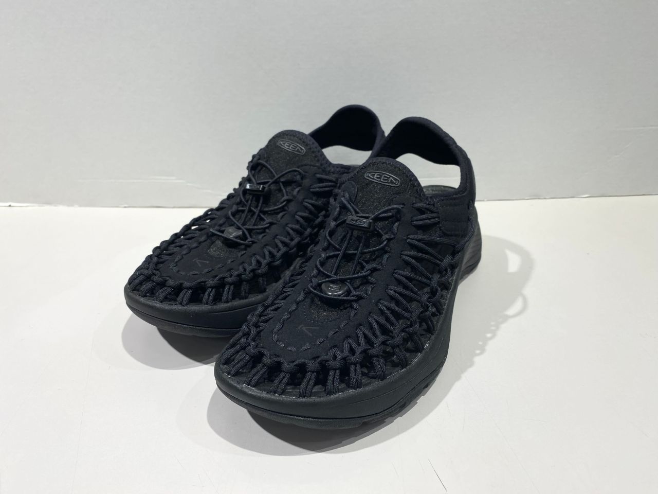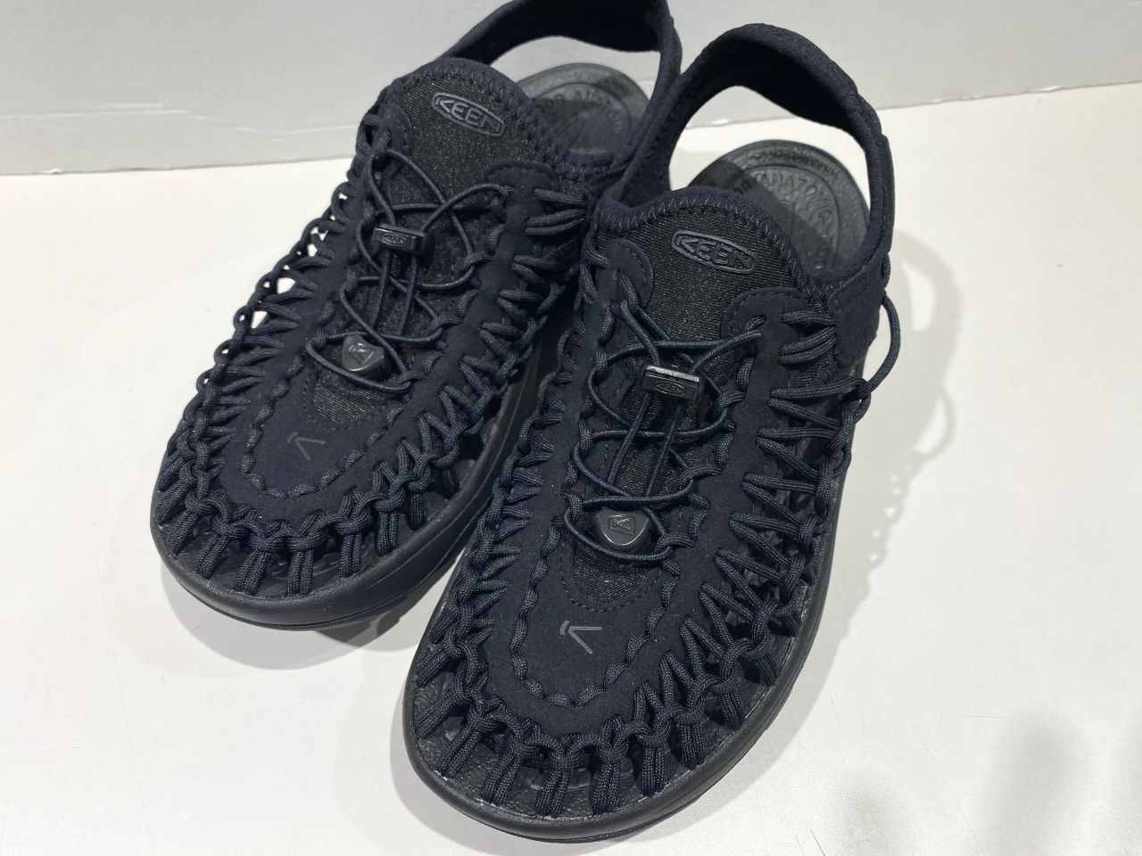 2本のポリエステル製伸縮コードが足の動きに合わせて変形し優れたフィット感もあり、脱ぎ履きしやすいKEENならではのバンジーレスシューズ!!