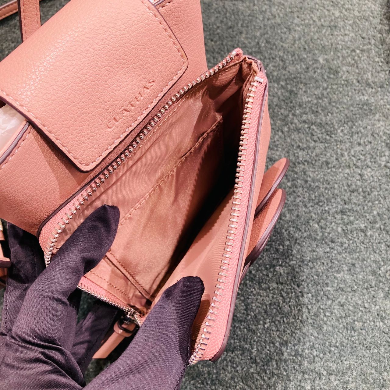 背面にも型押しのカメリアがあり、ブランドを存分に楽しめるデザインになっております♪