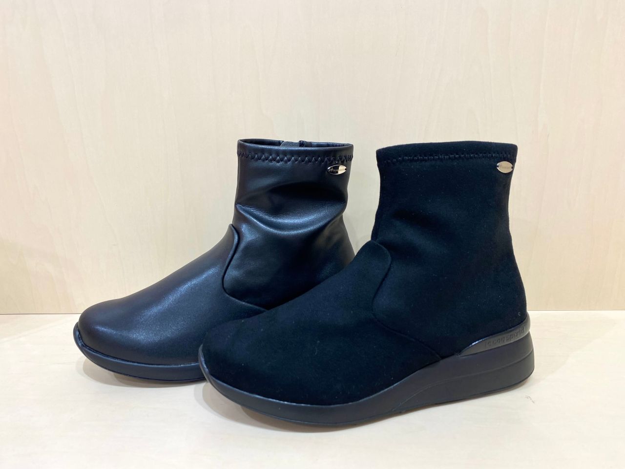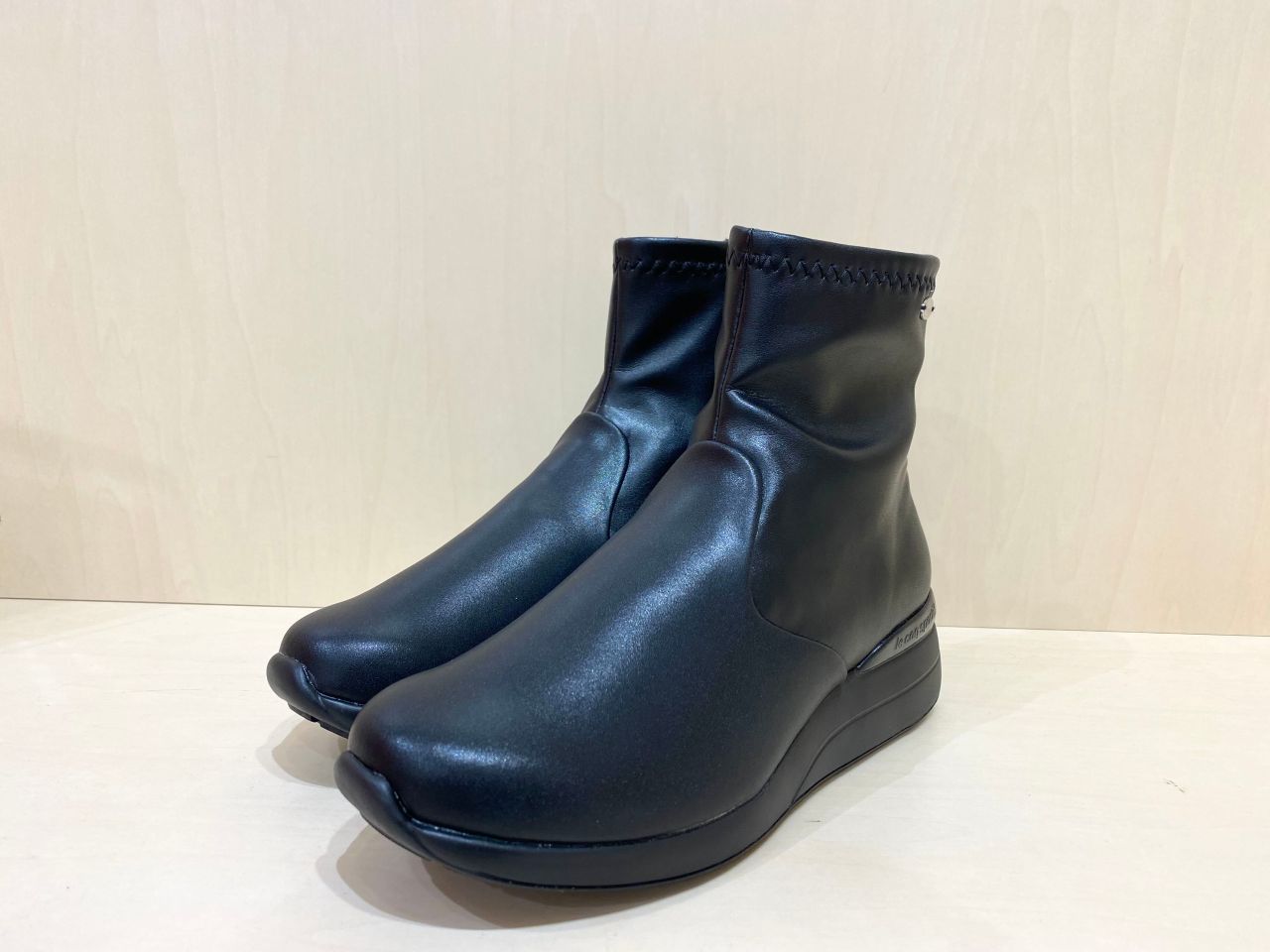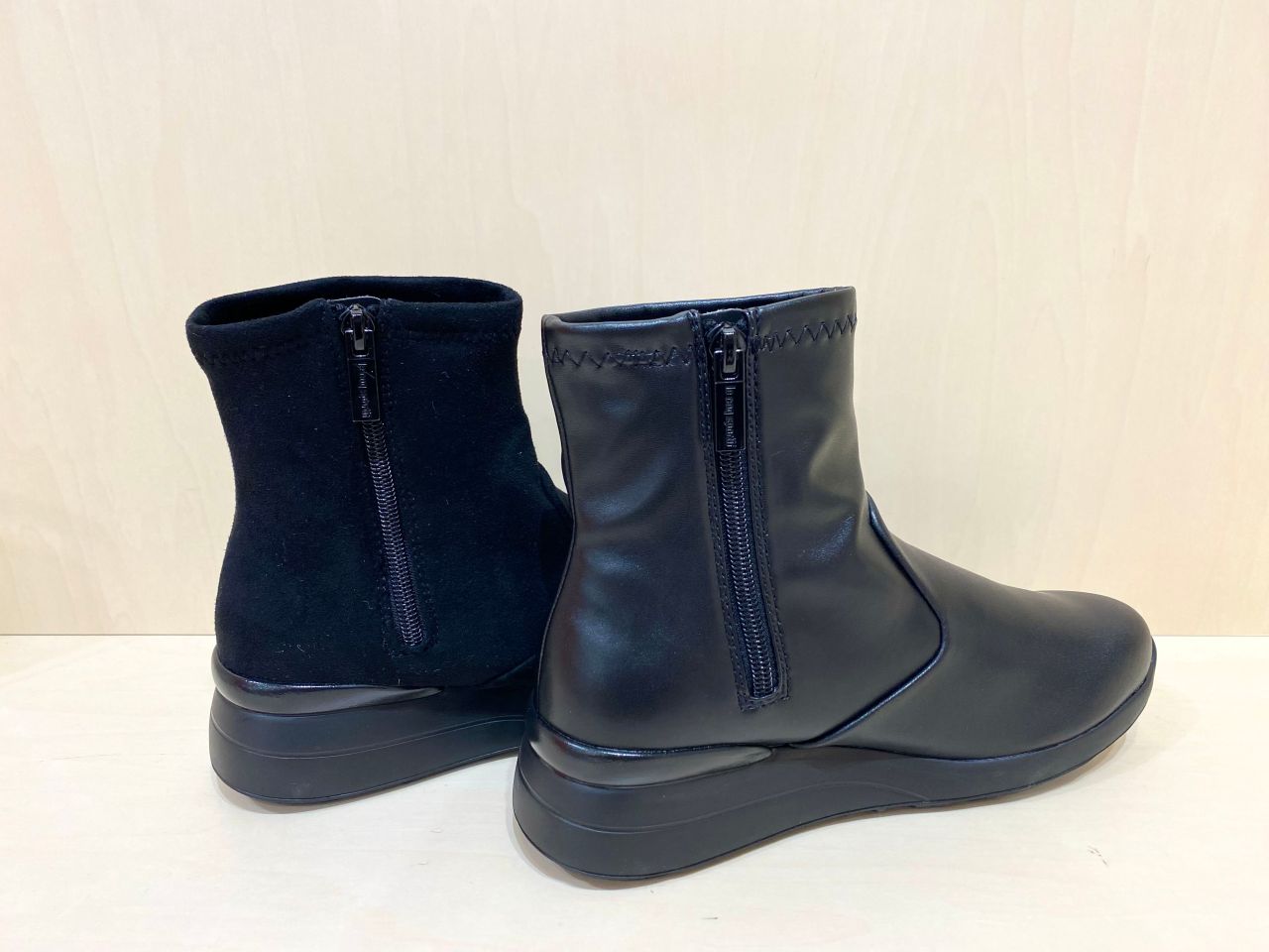 洗練されたラインで綺麗な厚底ソールのショートブーツになっており、足首周りは伸縮性のある素材なので柔らかなフィット感で履き心地も快適な一足になっております!!
