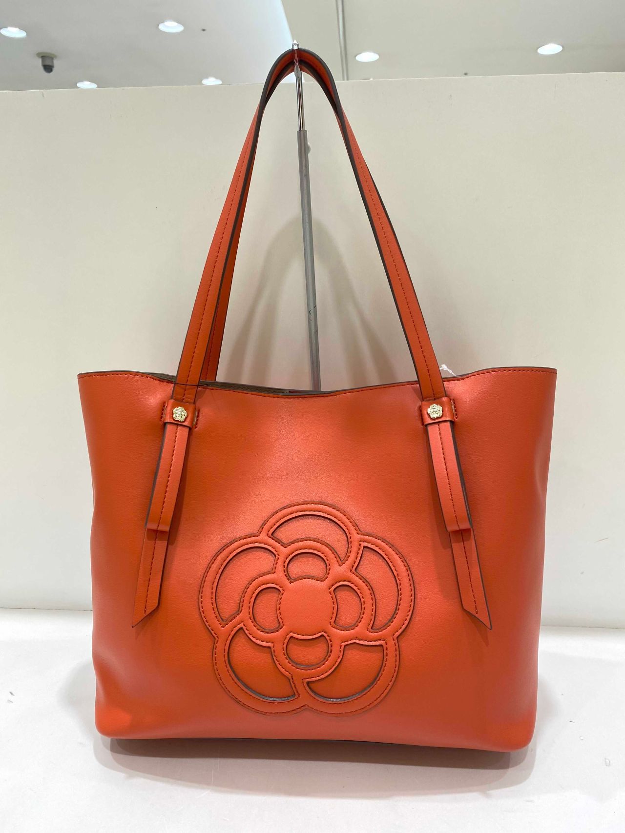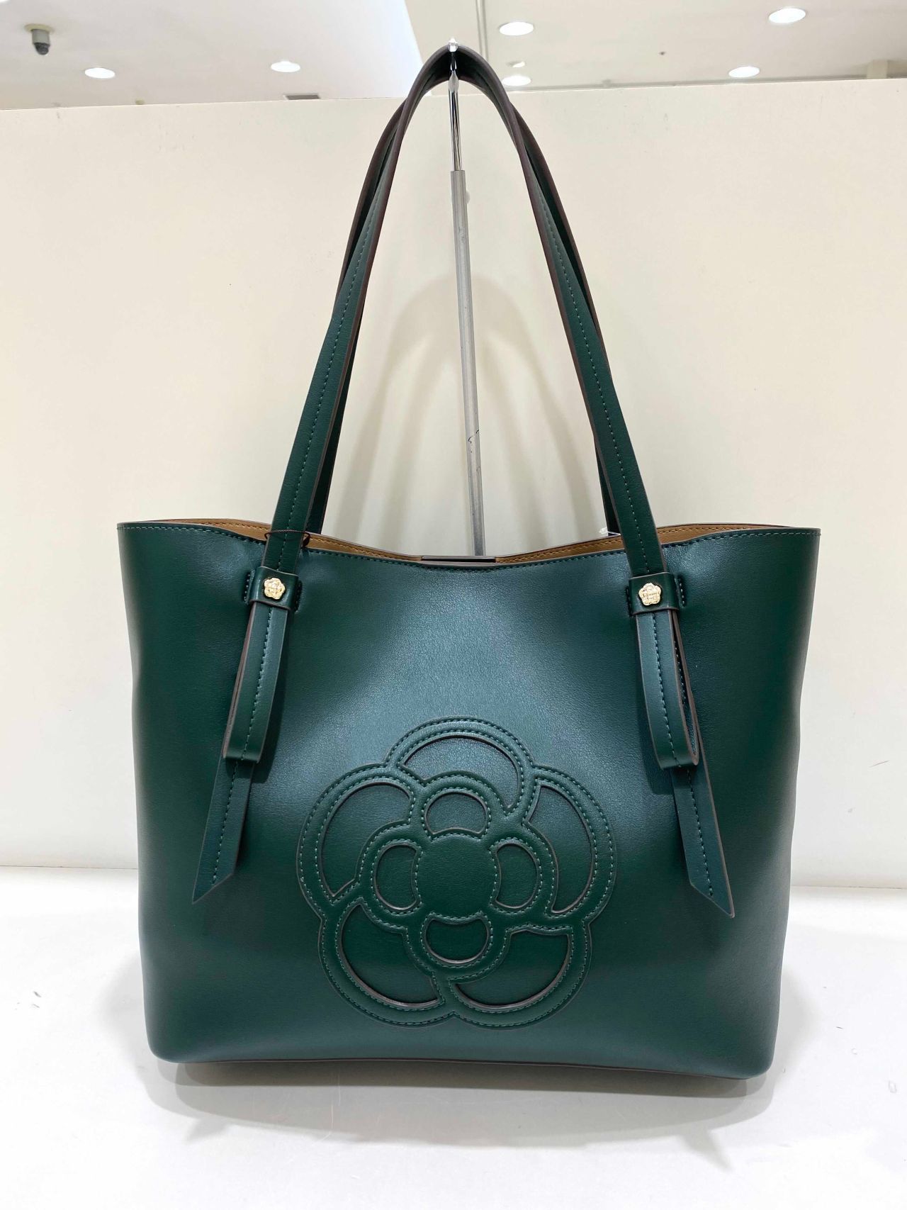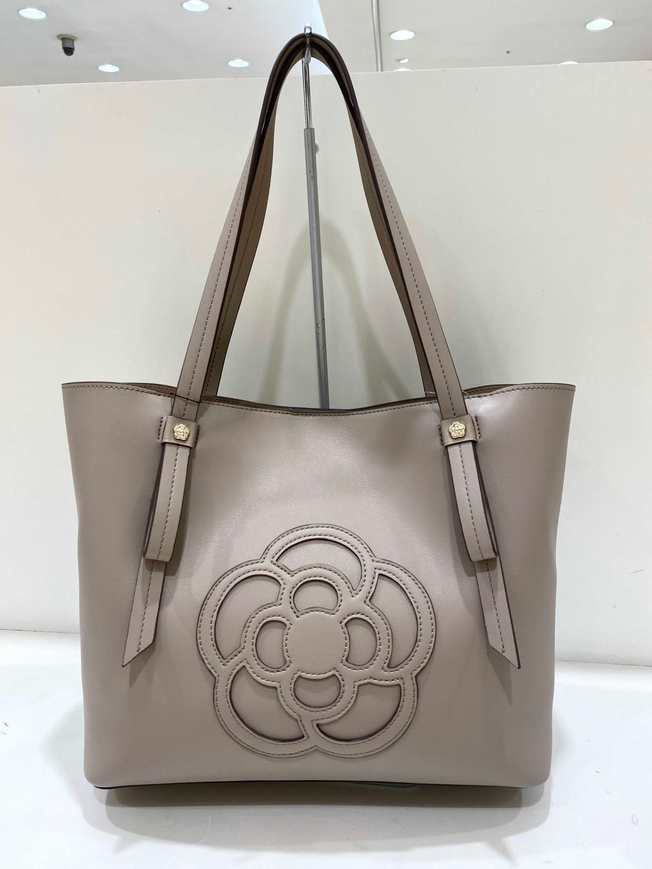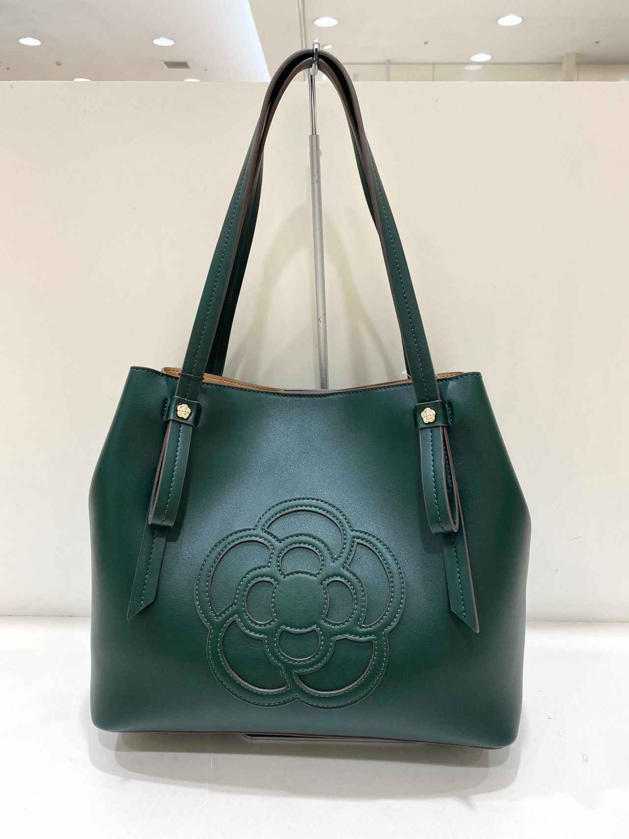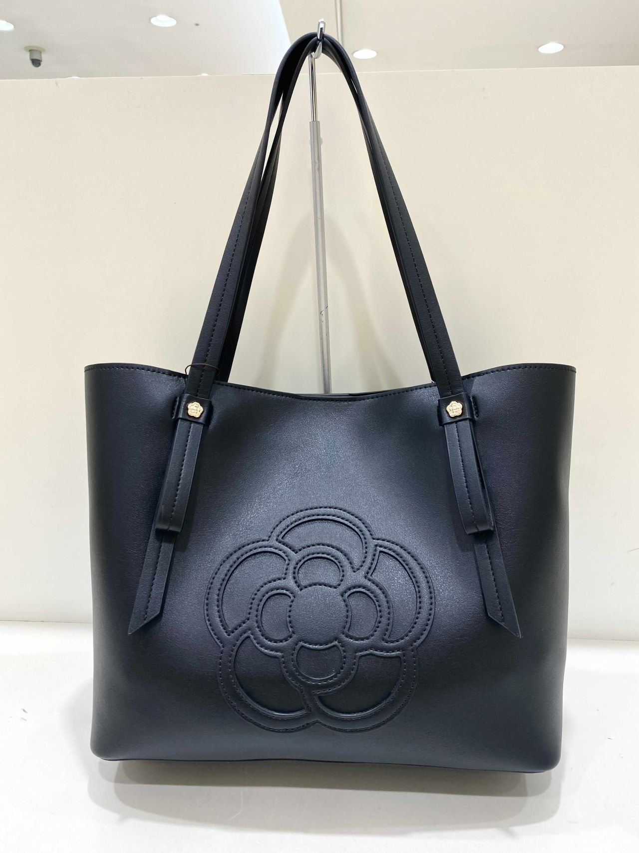 中央には大きめのカメリアのパッチがついていて、シンプルで高見えするアイテムになっています!