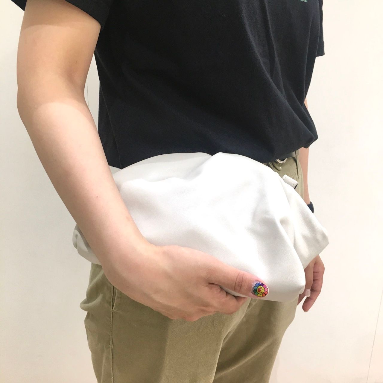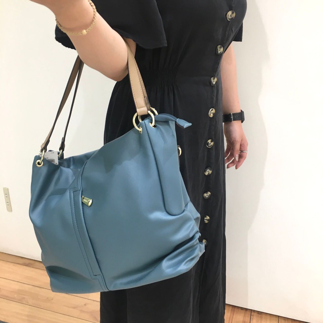 クシュっとした柔らかい素材感で、スクエアフォルムで大人可愛いバッグです。