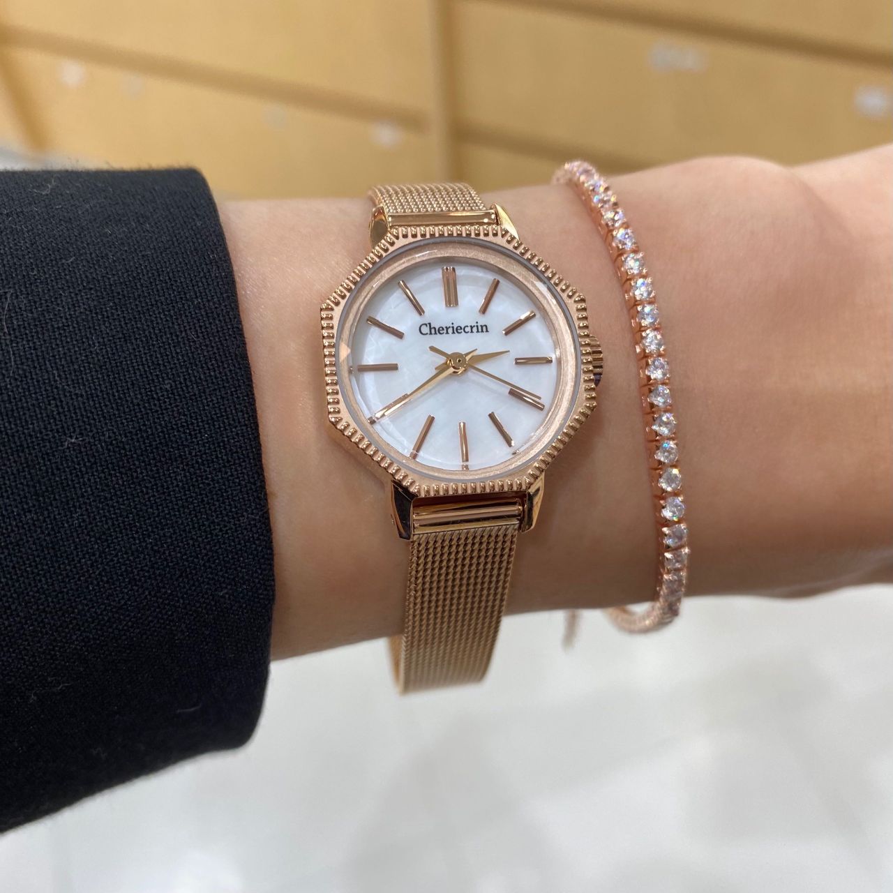 時計と重ね付けしても可愛いデザインです