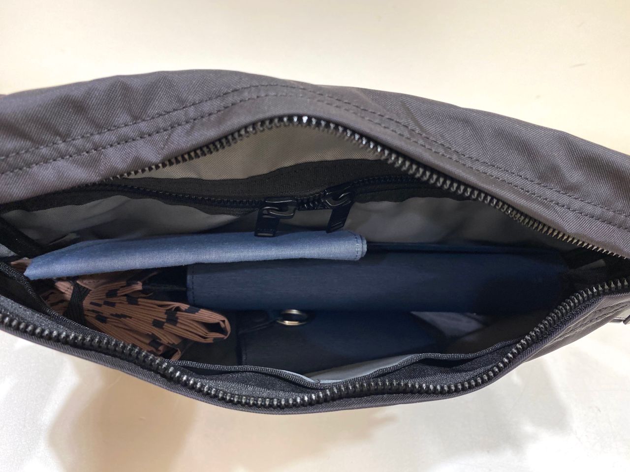 ファスナーは両端から開閉ができるようになっています。