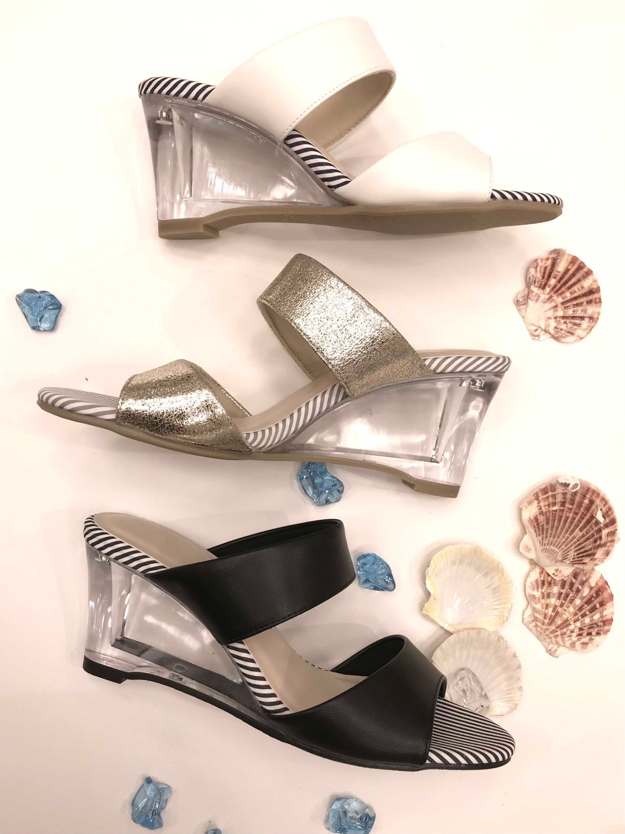 クリアの涼しげなヒールが目を惹く一足。