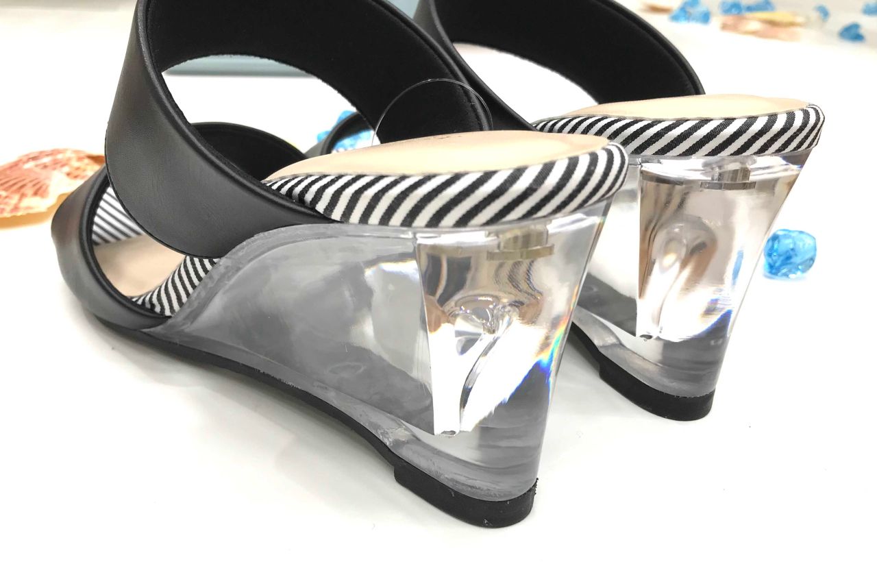 クリアヒールのウェッジサンダルを