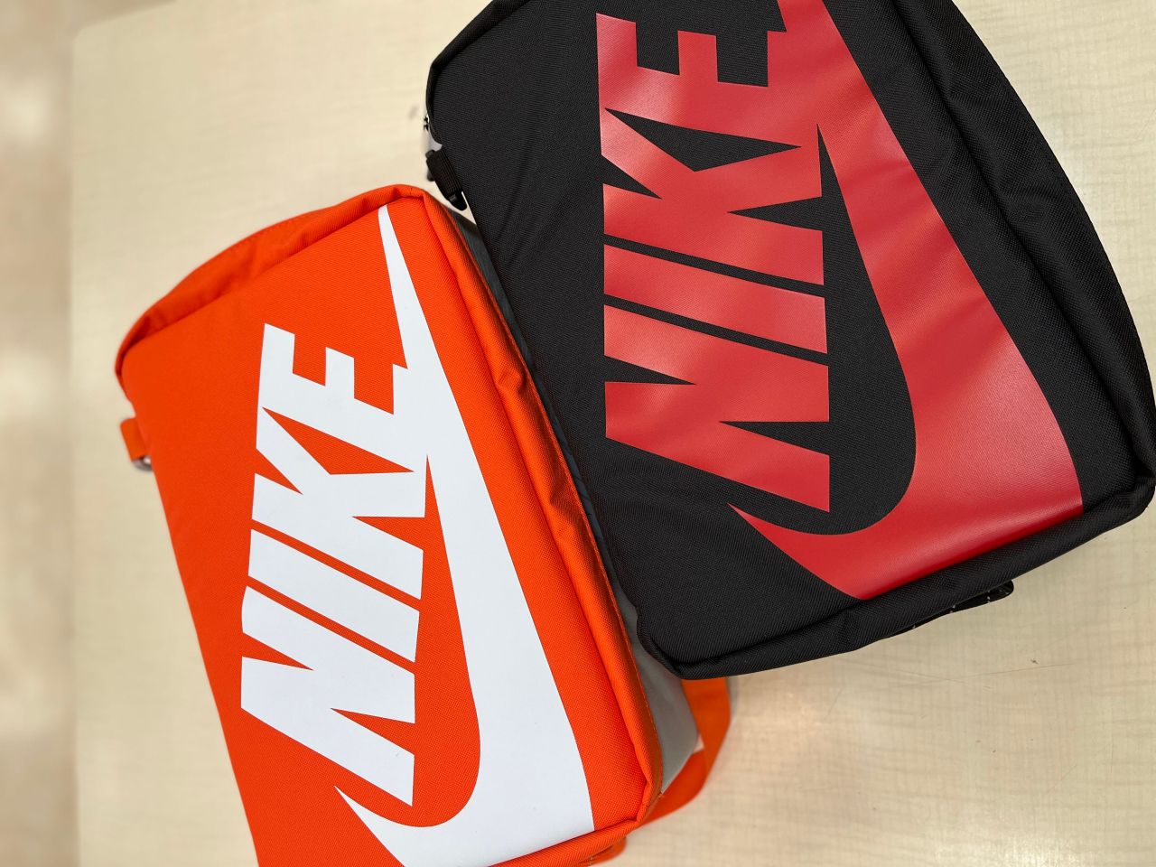 ジムやちょっとした運動時に お気に入りの1足を入れて持ち歩いて見ませんか? NIKEの箱を持ち歩いているようなバックになってるので是非店頭で見てください!