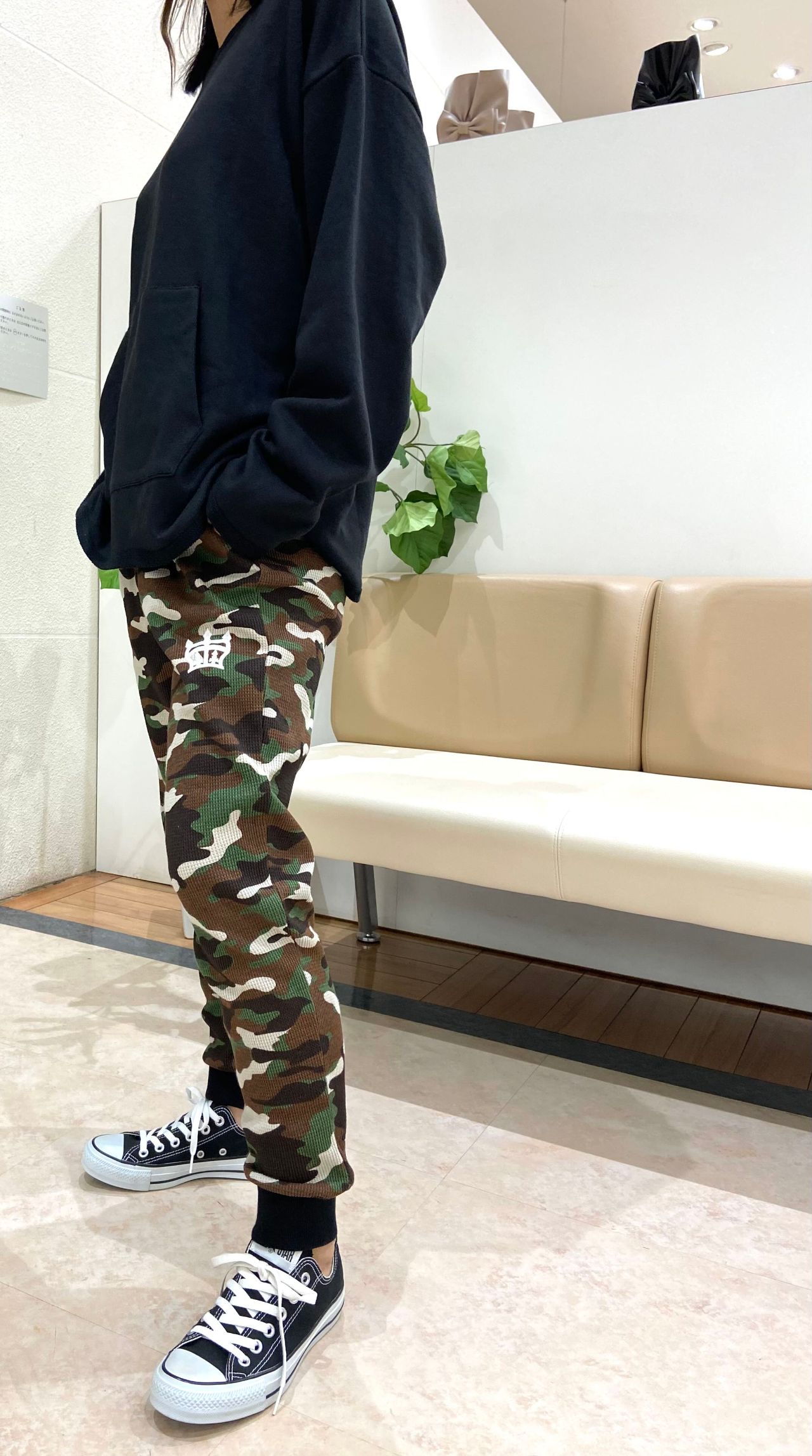総柄のワッフルパンツのセットアイテム。