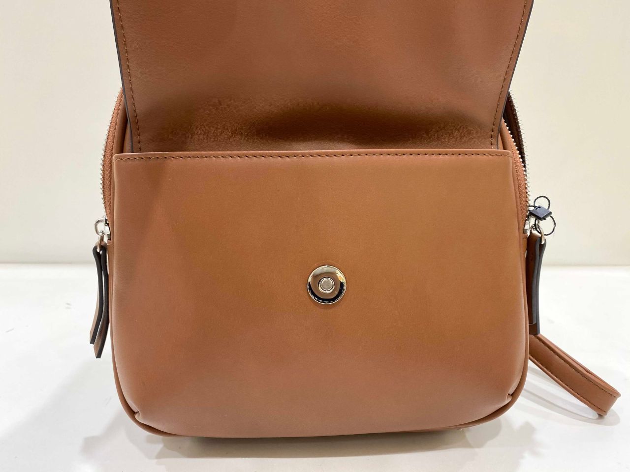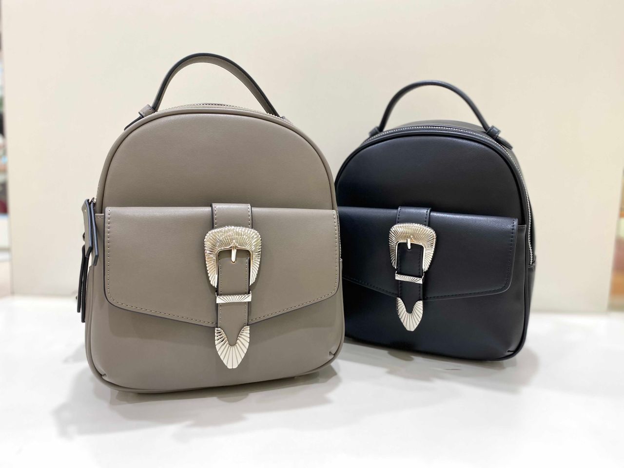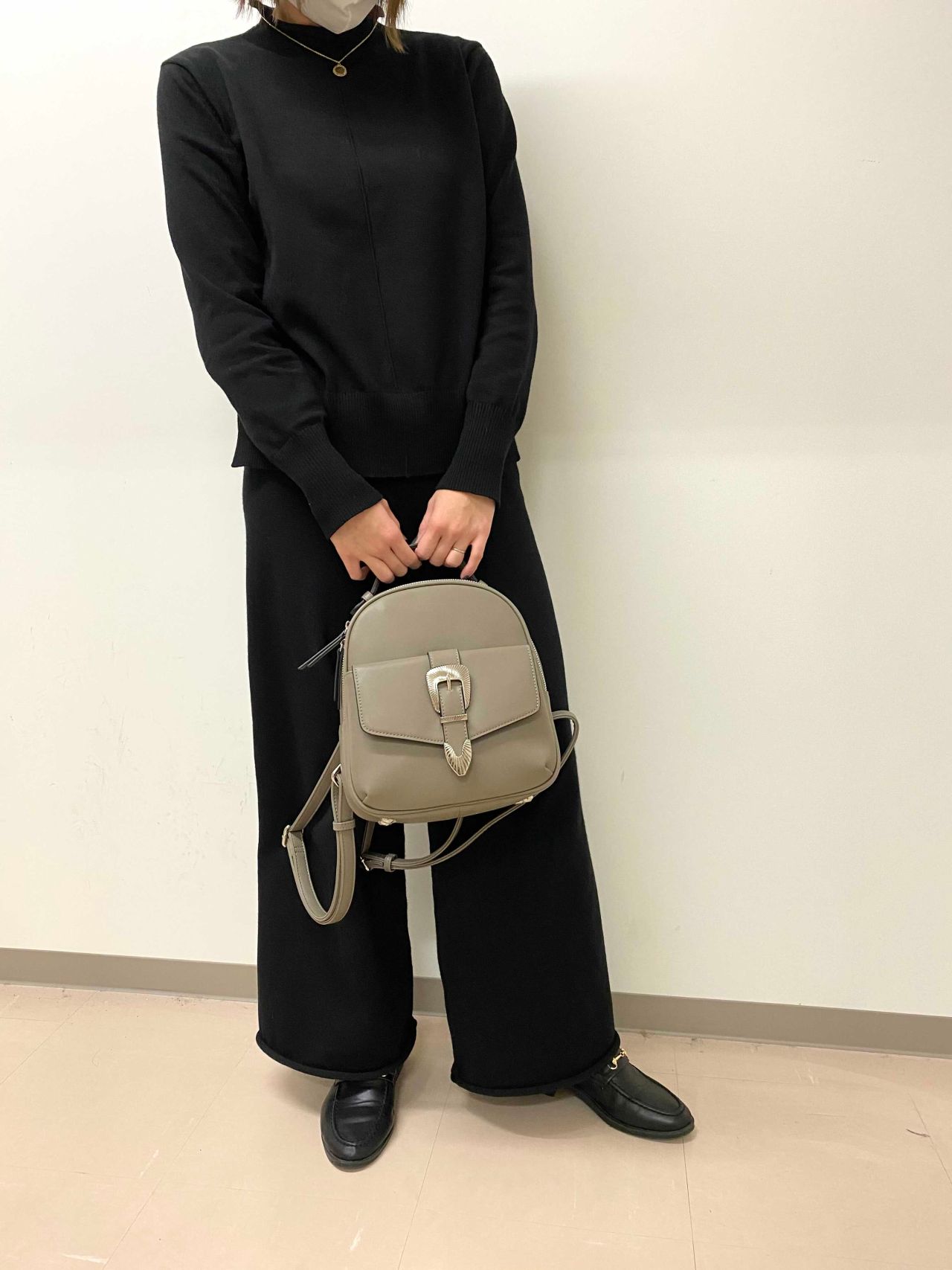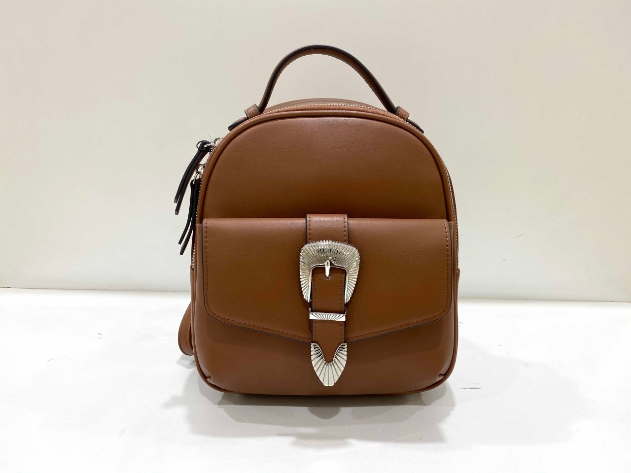 バックルがポイントになっているこちらのリュック。小さいながらマチがあるのでたくさん荷物が入ります!