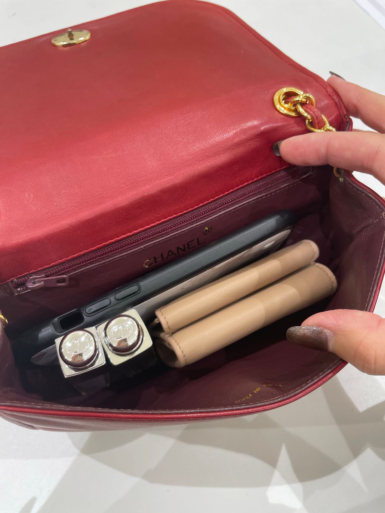 ミニ財布、携帯、お化粧品(リップなど)