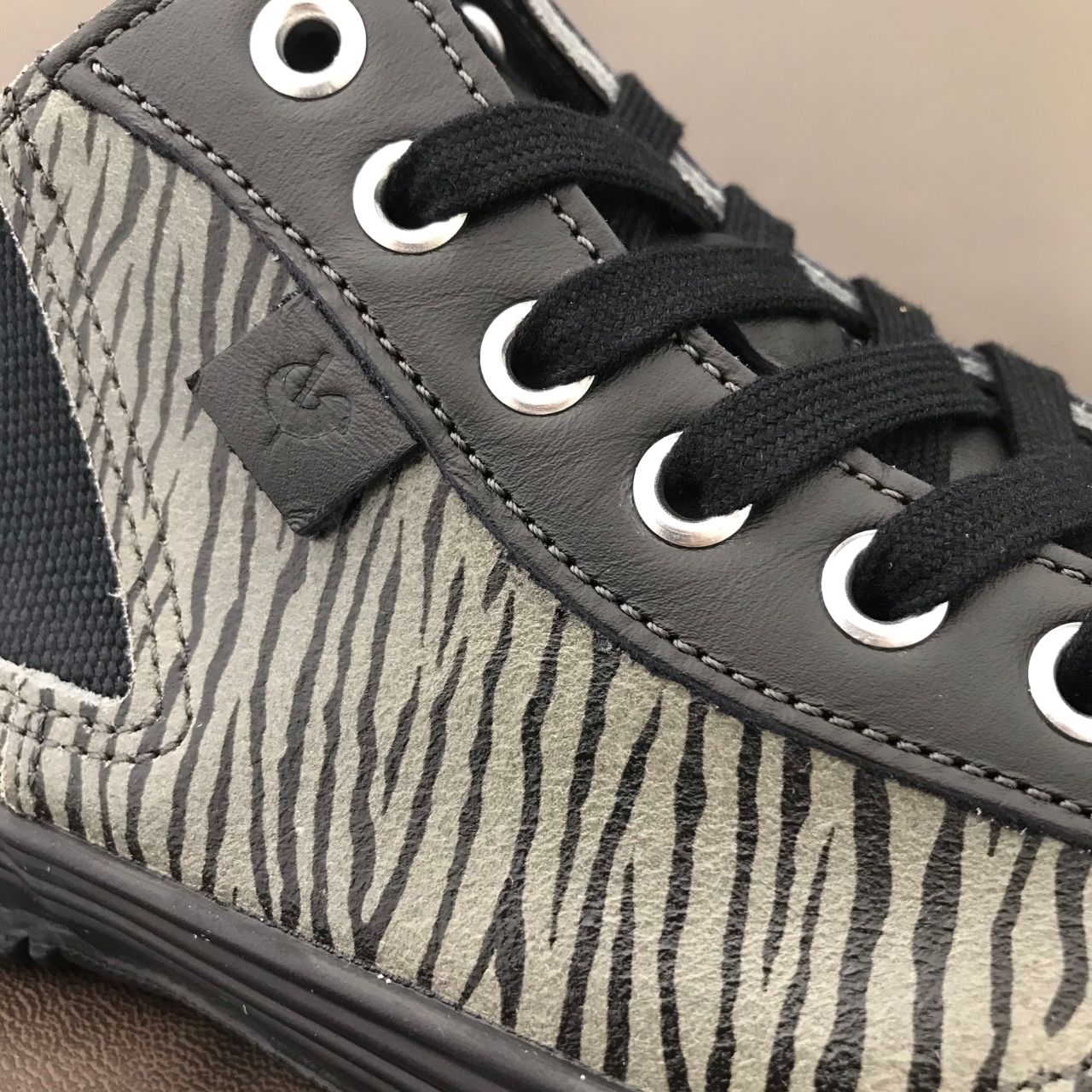 ブラックはカウレザー(牛革)にブラックゼブラ柄
