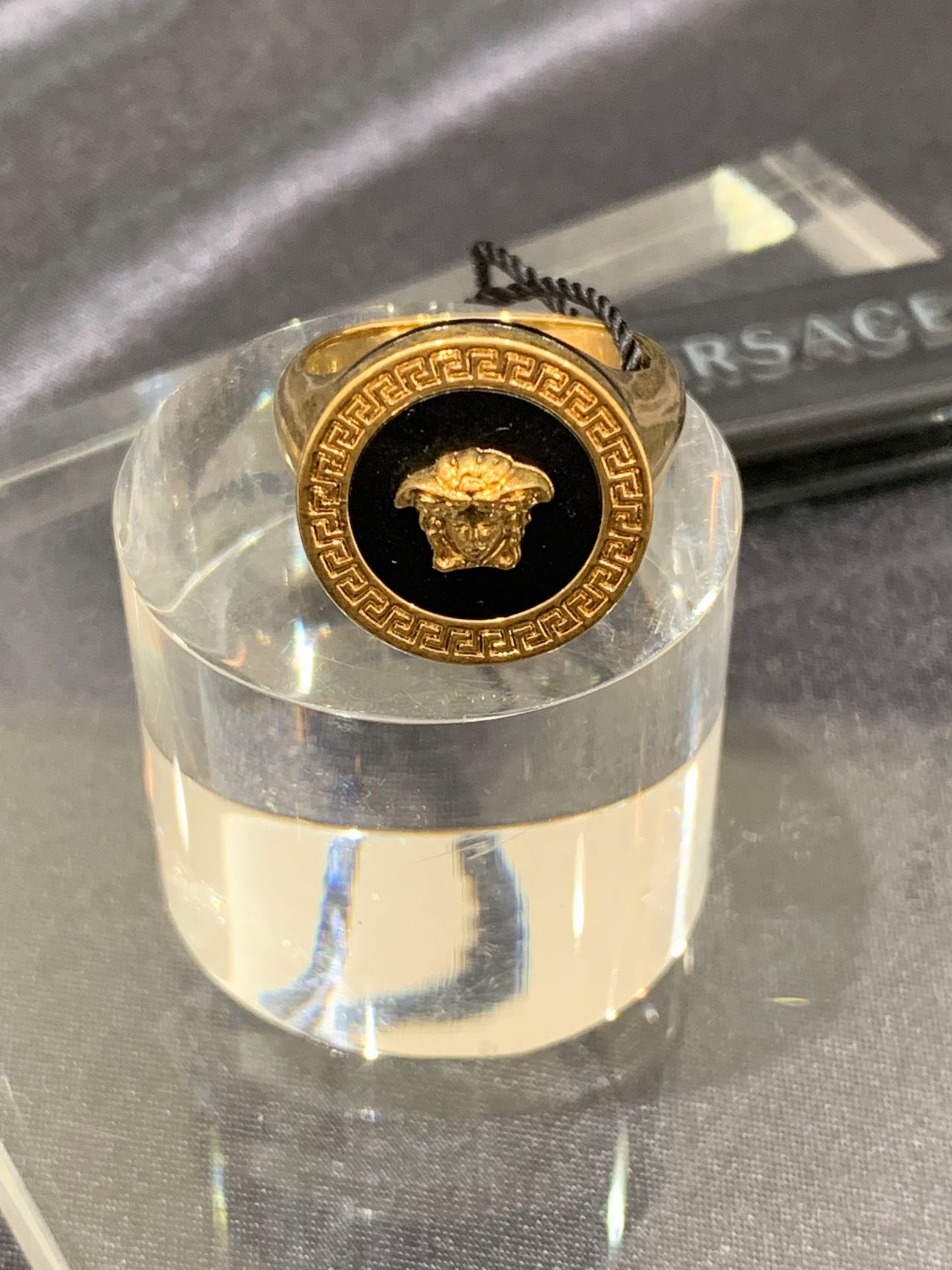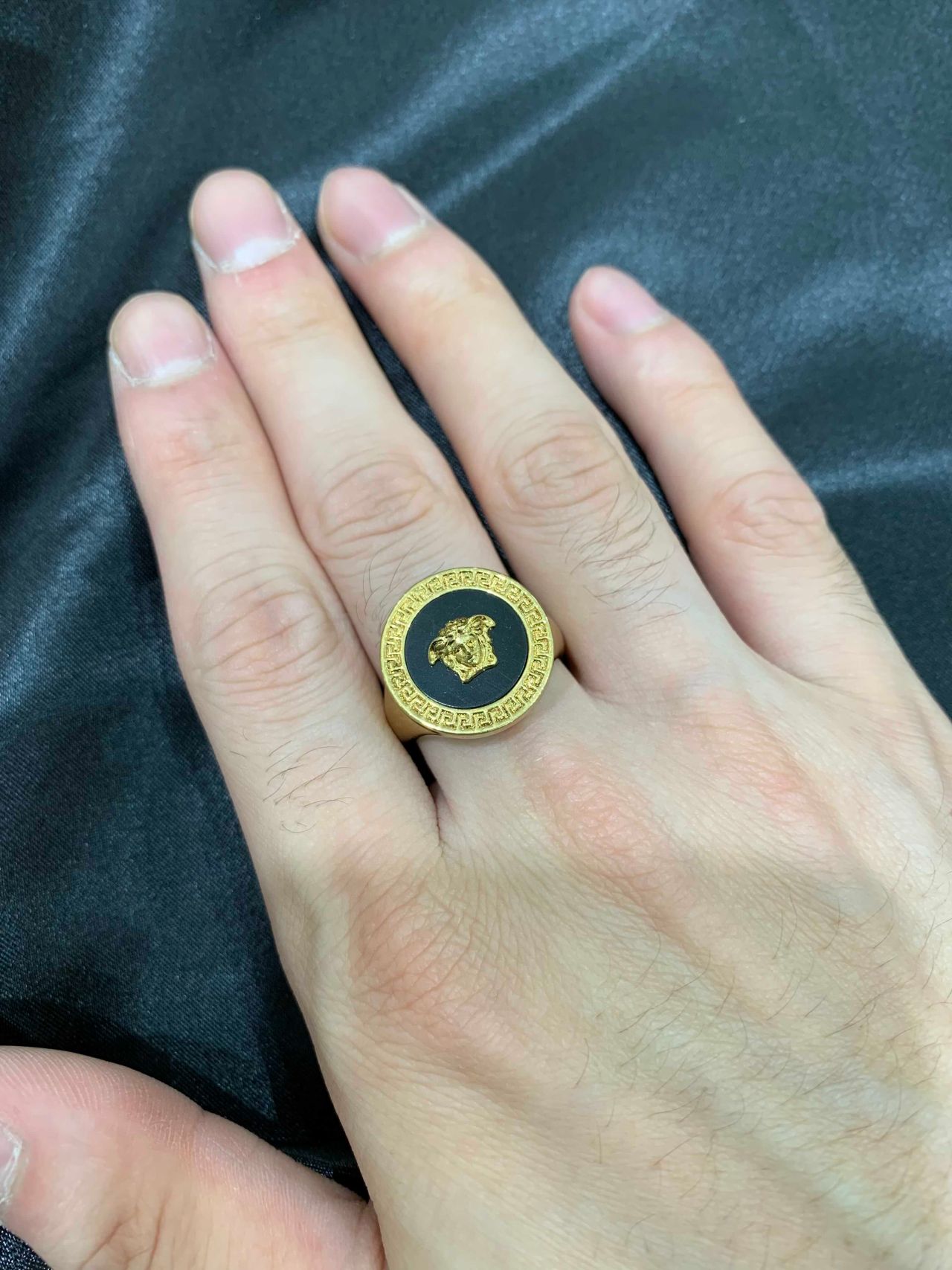 中央にヴェルサーチのアイコンになっているメデューサが描かれた存在感のあるリングです