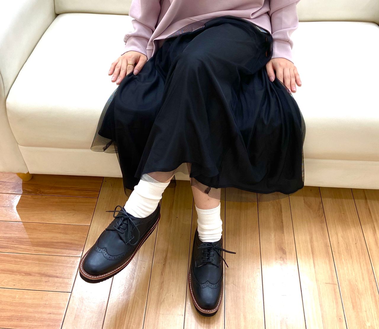 靴下と合わせたコーディネートにもおすすめ。