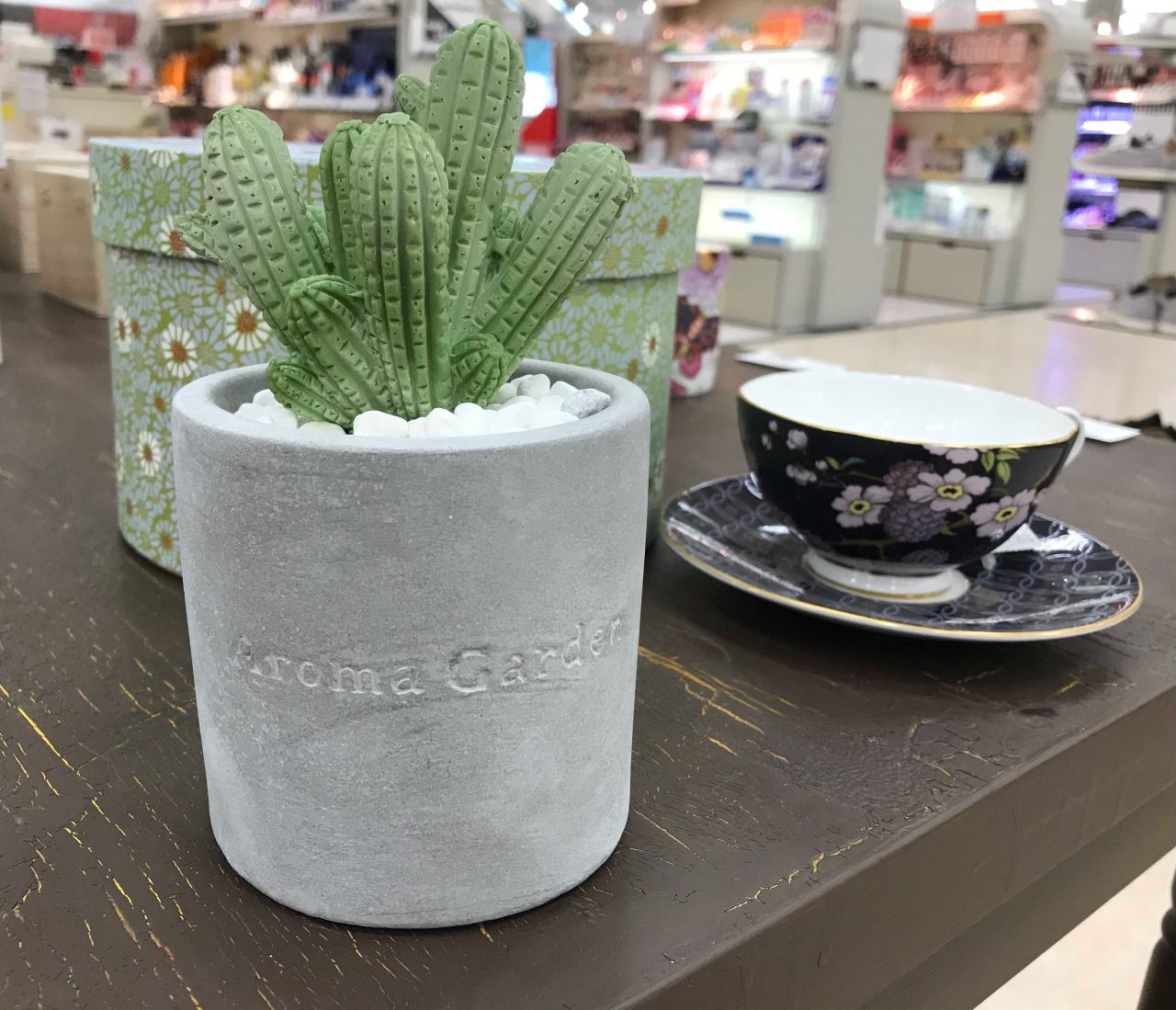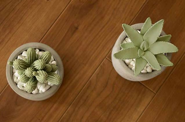 無機質なセメントのカップに入った、まるで本物のようなかわいい2種類のサボテンからは、それぞれ華やかな、いい香りがするんです。