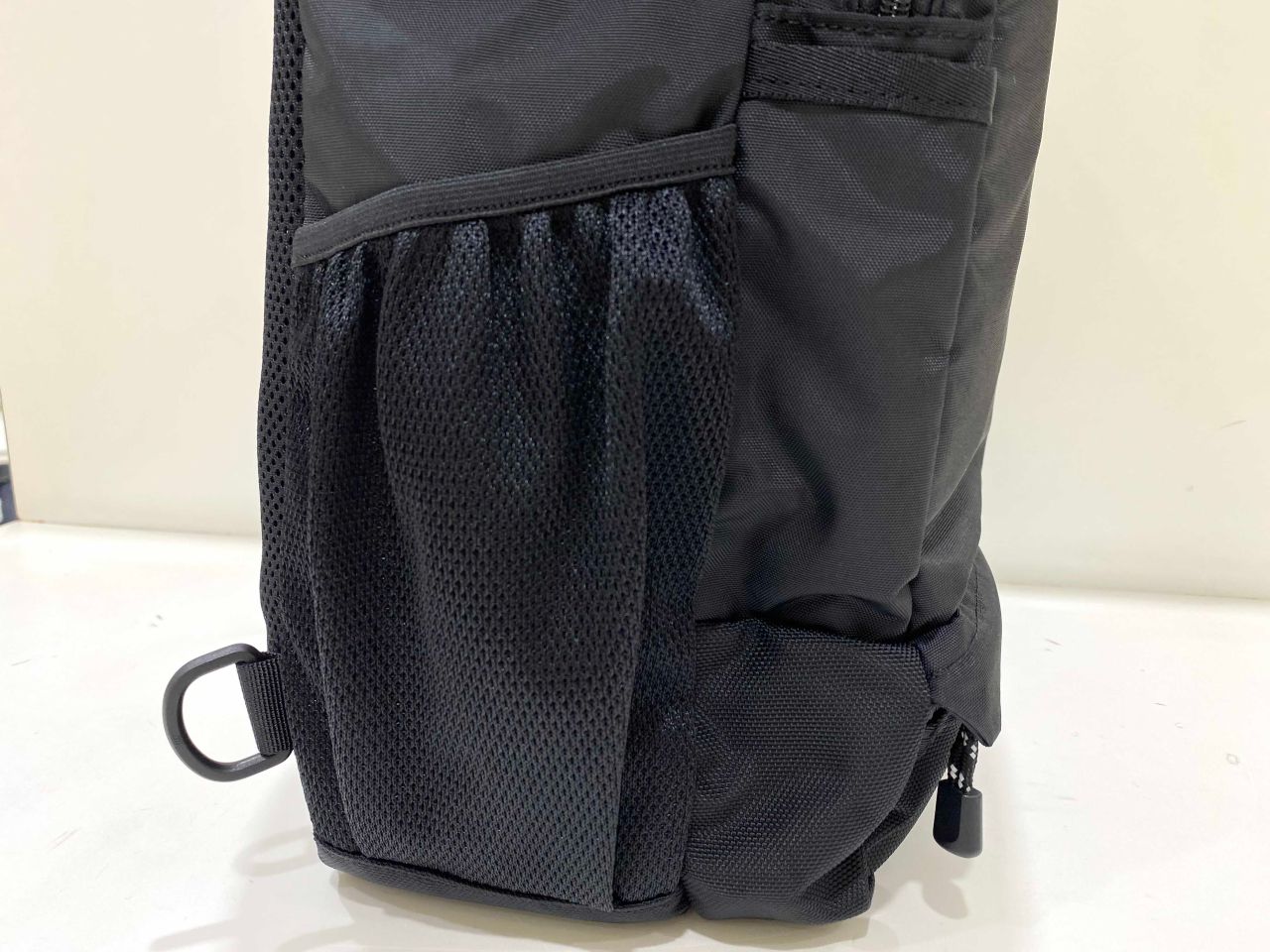両サイドには飲み物や折り畳み傘などを簡単に出し入れできるメッシュポケット付きです。
