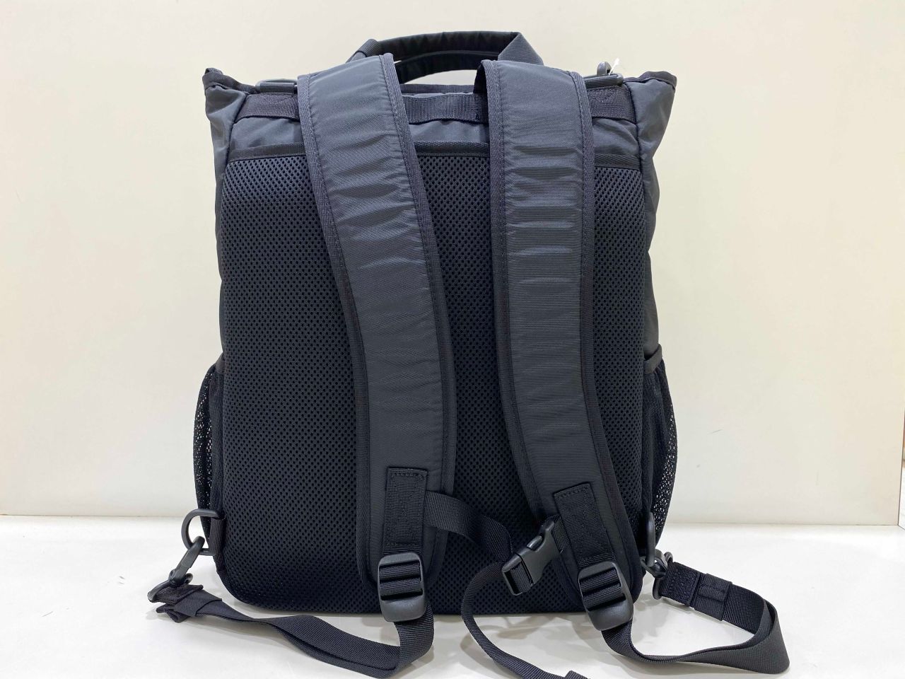 ショルダー、リュック、手で持つことができます!ショルダーハーネスは使わない時にメッシュポケットに収納できるようになっています!!