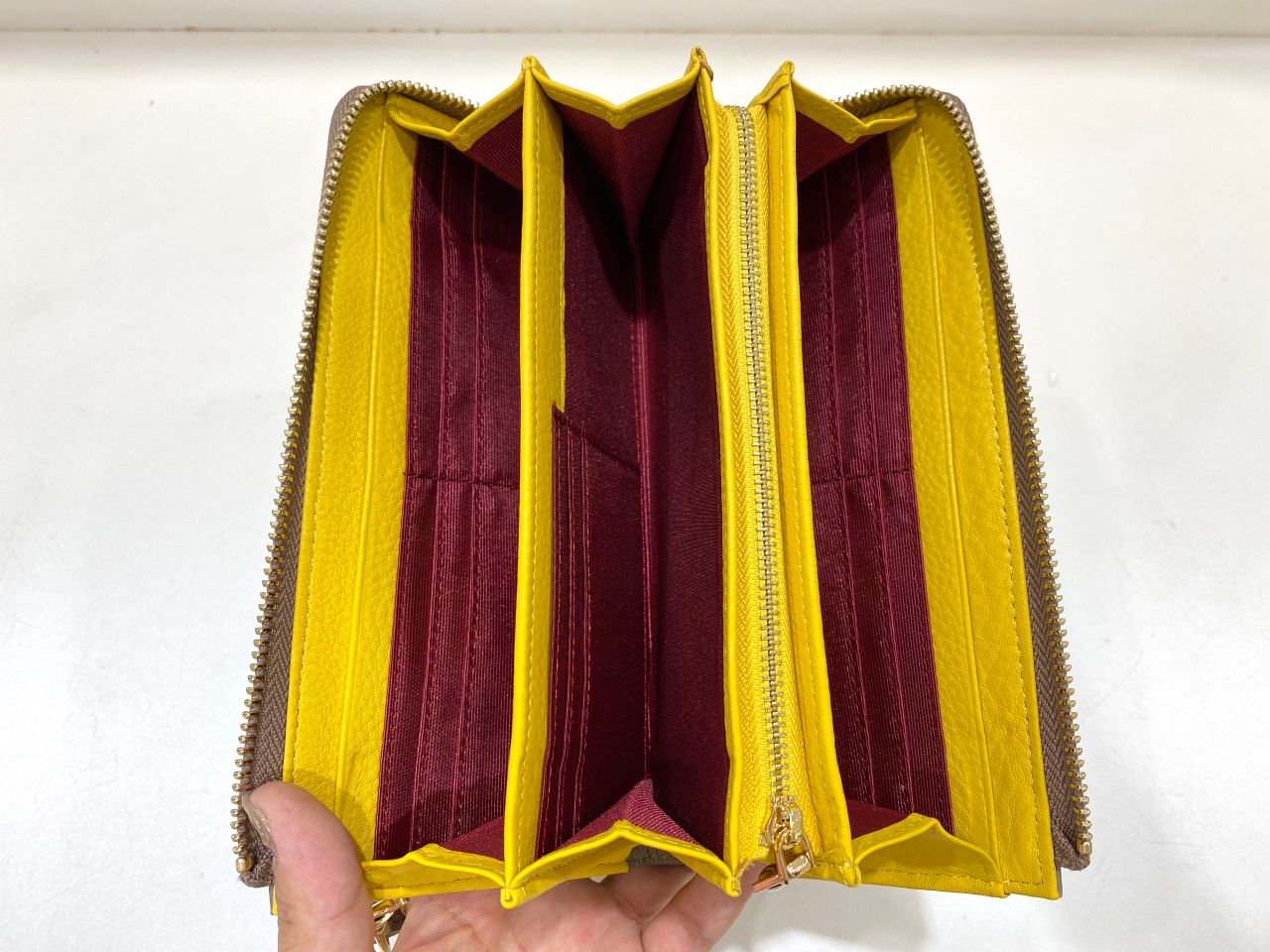 外側の内側のバイカラーがお洒落なL字ファスナー。