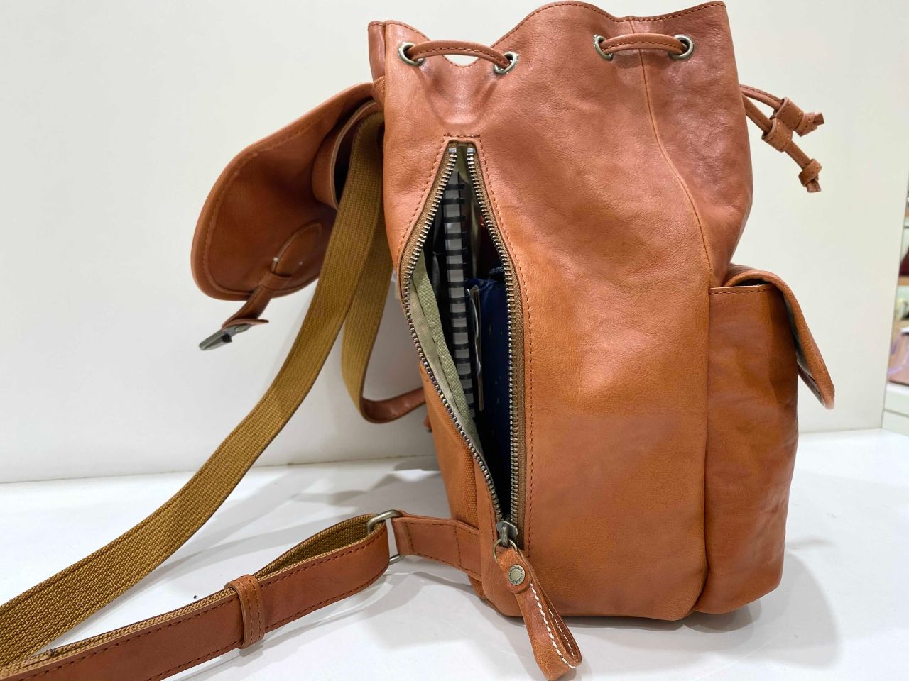 バックルを開けると中は巾着になっています。