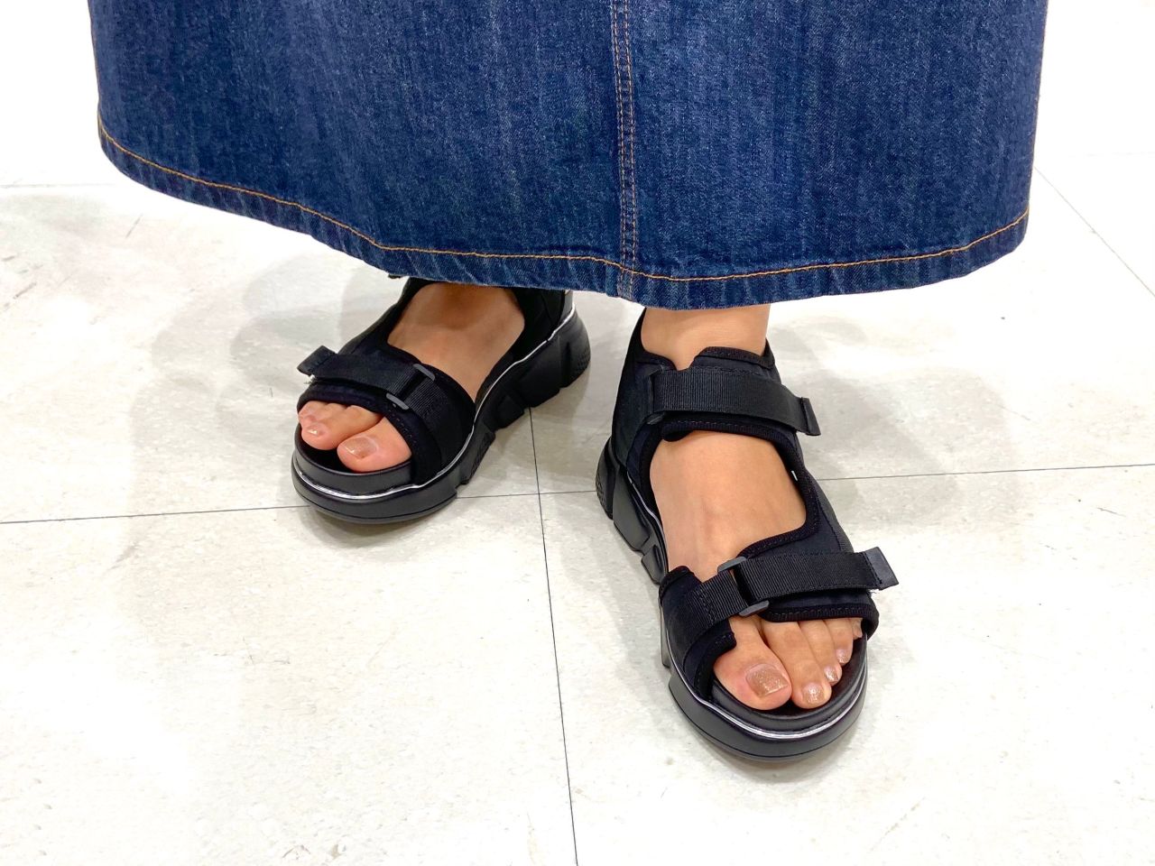厚底のソールで脚長効果も♡